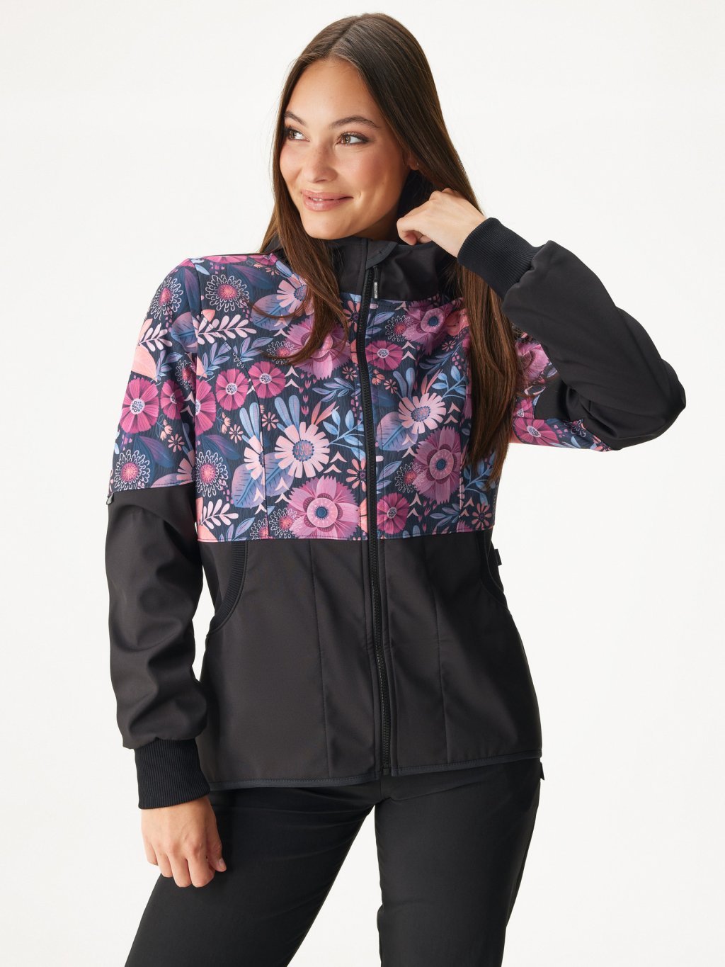 Dámska softshellová bunda s fleecom Street, Čierna, Kúzelné kvety