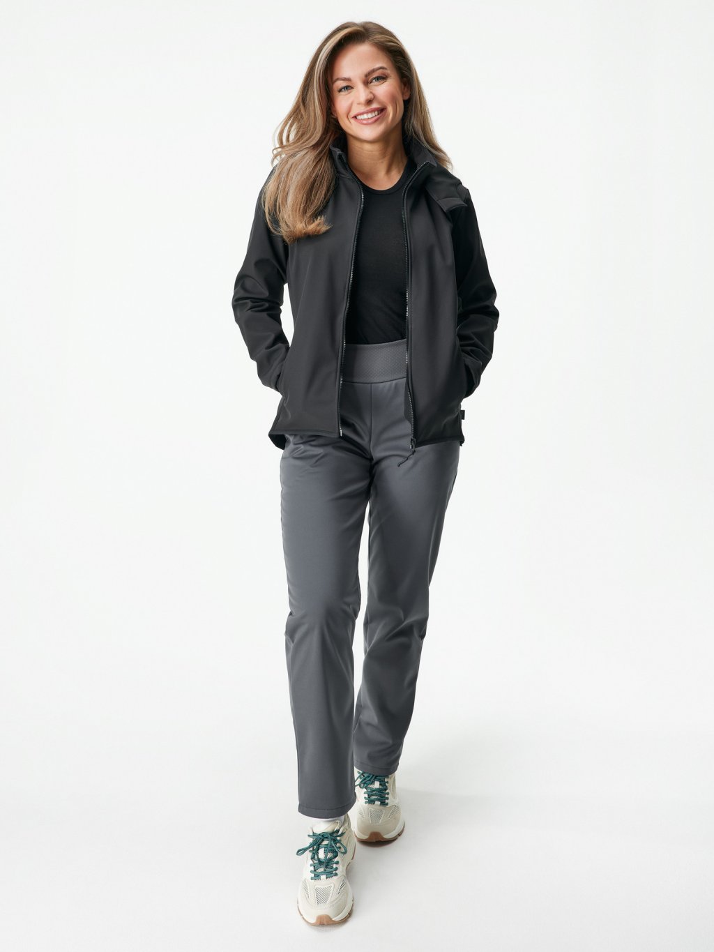 • hlavný materiál (softshell): rub, líc: 100% polyester, membrána: 100% polyuretan