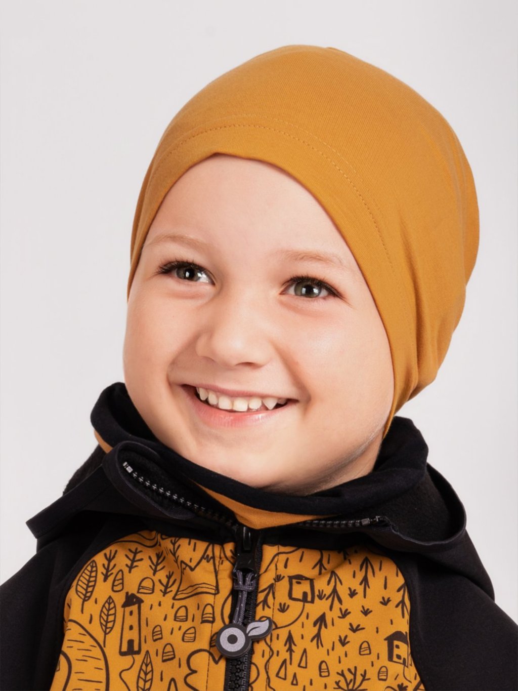 Dětská čepice z teplákoviny Basic, Hořčicová