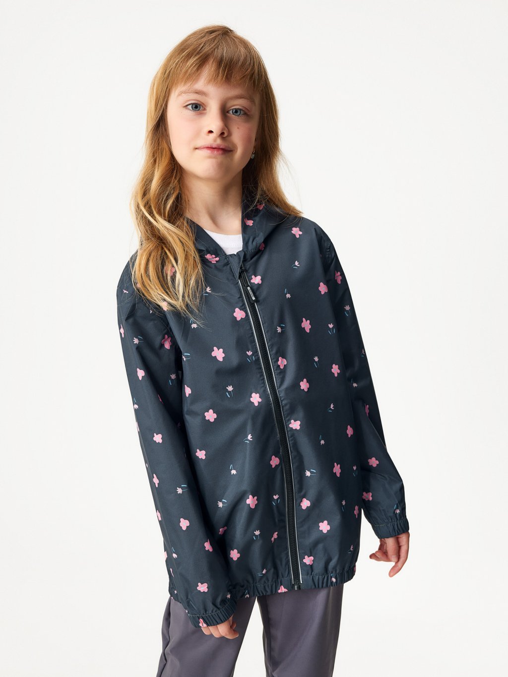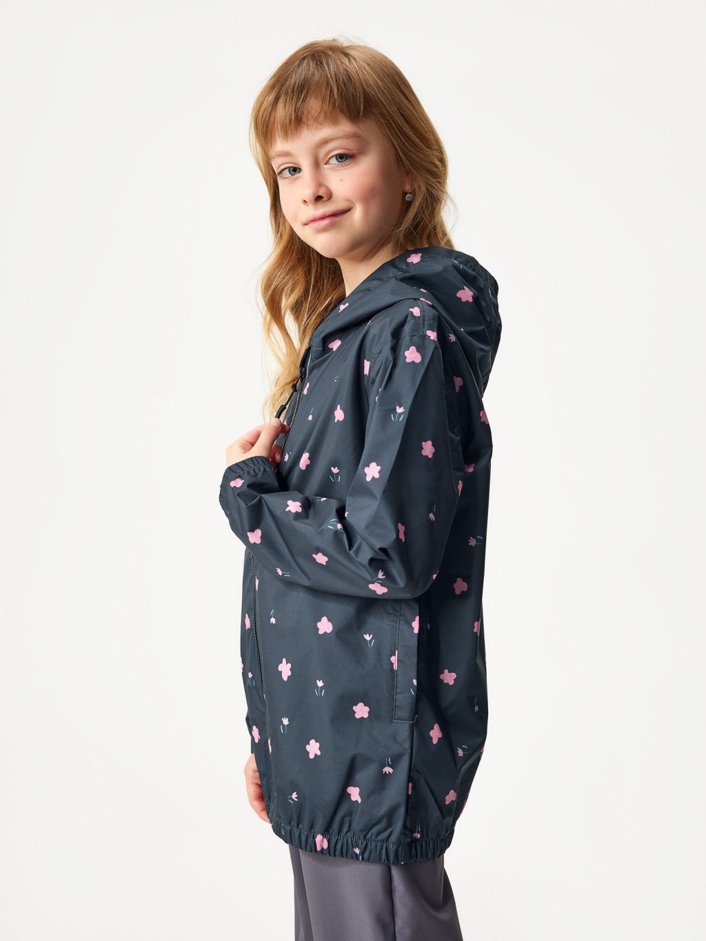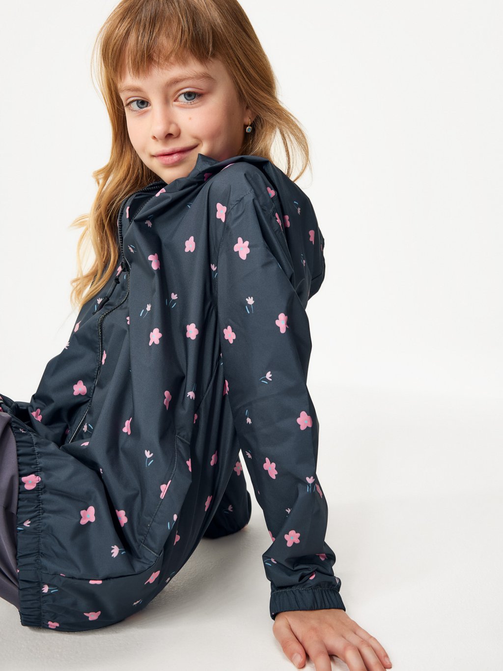 Detská bunda do dažďa, Čierna, Kvety
