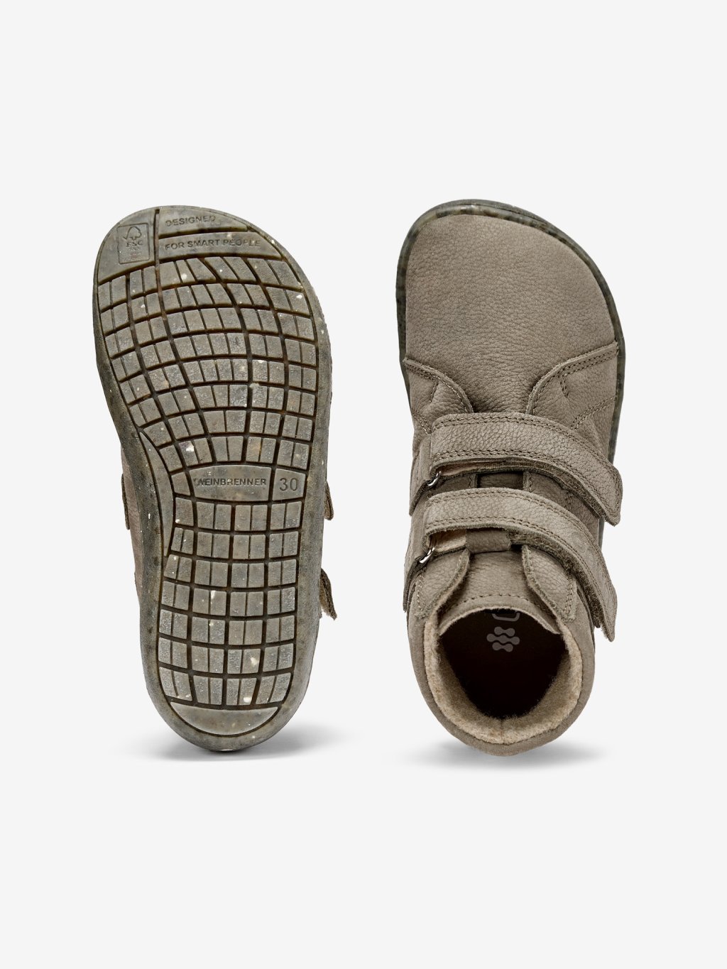 Na výrobu barefootovej obuvi sme použili vysoko kvalitné materiály, ktoré sú zdravotne nezávadné a veľmi priedušné. Obuv so zimnou podšívkou má výborné termoizolačné vlastnosti. Flexibilná podrážka je vyrobená z kvalitnej gumy s prímesou recyklátu. Jej nízky profil a vysoká flexibilita umožňujú podporu prirodzenej chôdze so zaistením vysokej stability. Kvalitná guma vykazuje nielen vynikajúcu odolnosť voči oderu, ale má aj skvelé protišmykové vlastnosti.