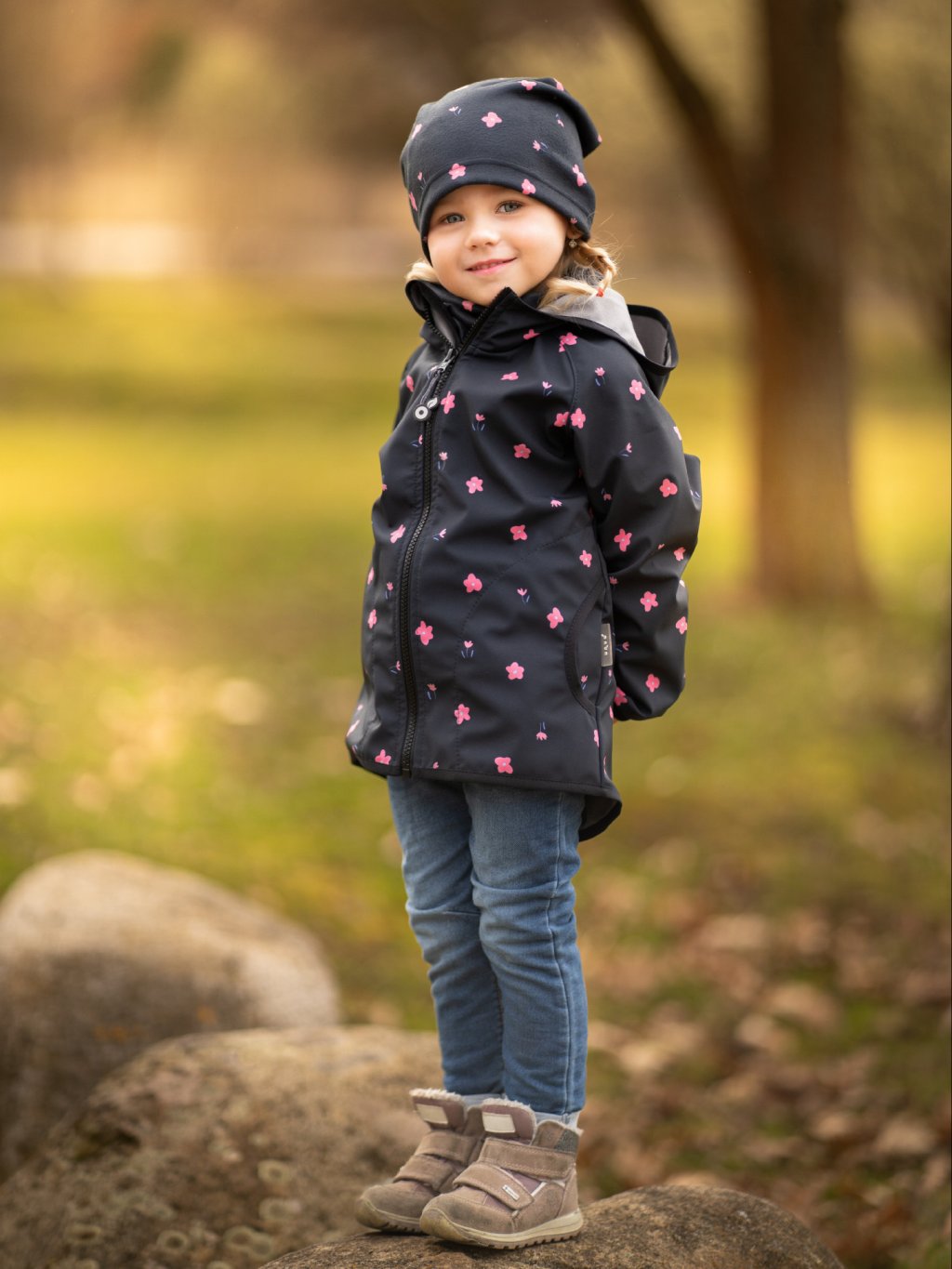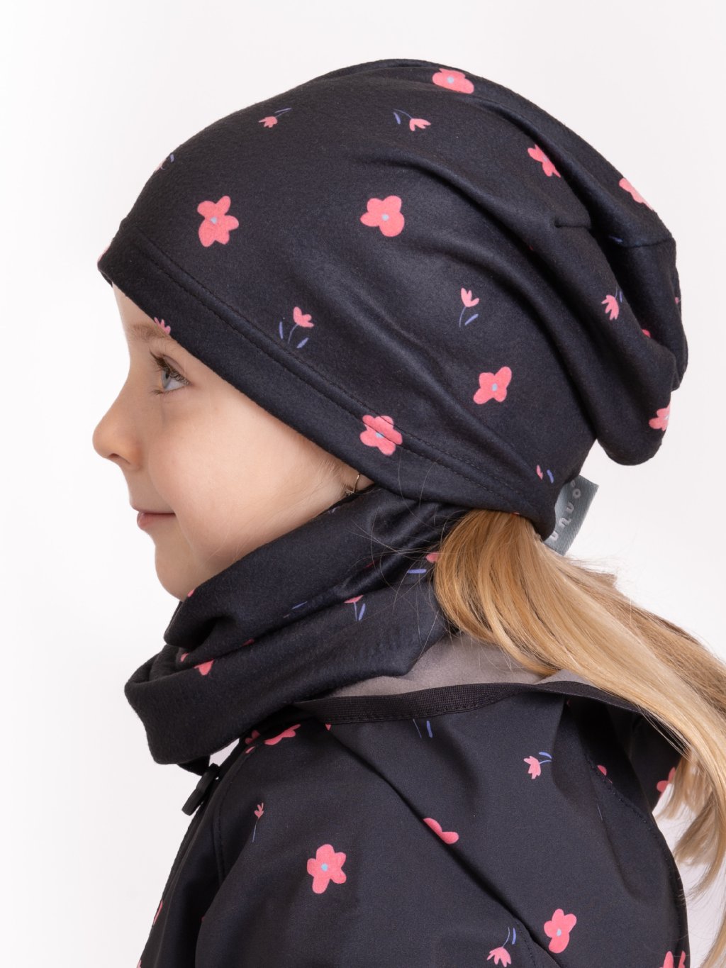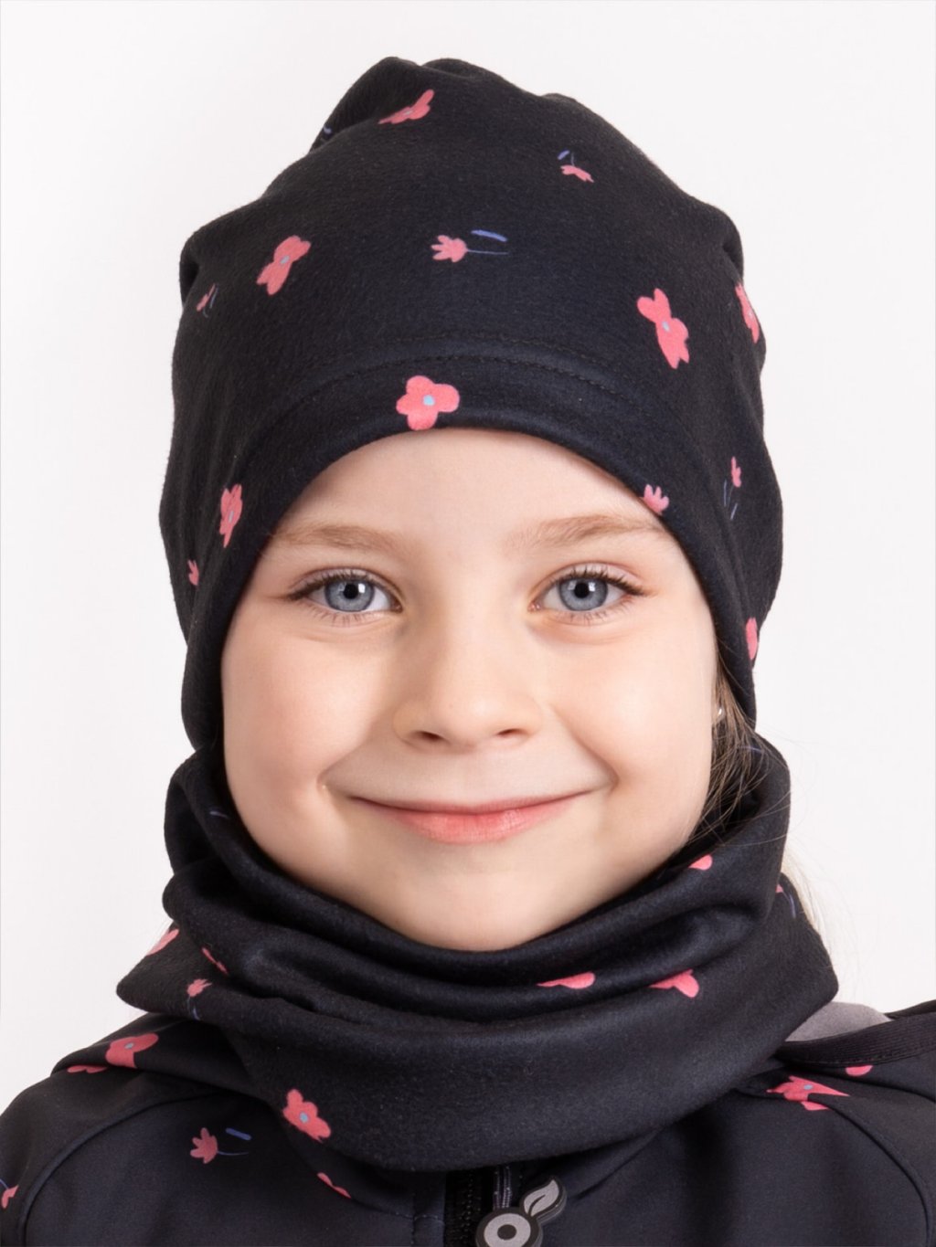 Detská fleecová čiapka Basic, Čierna, Kvety