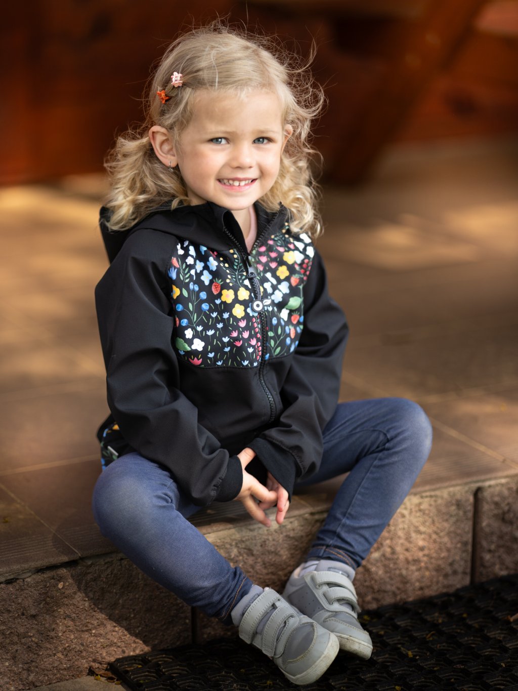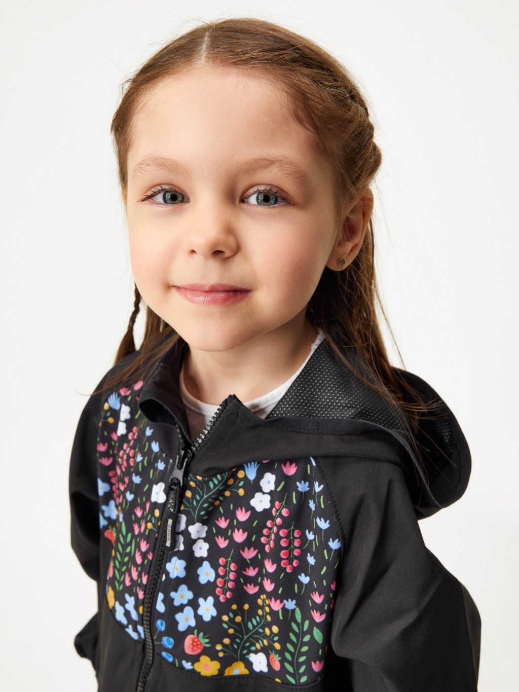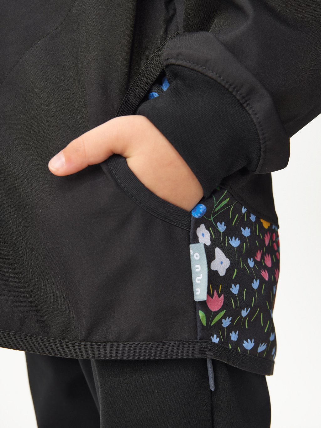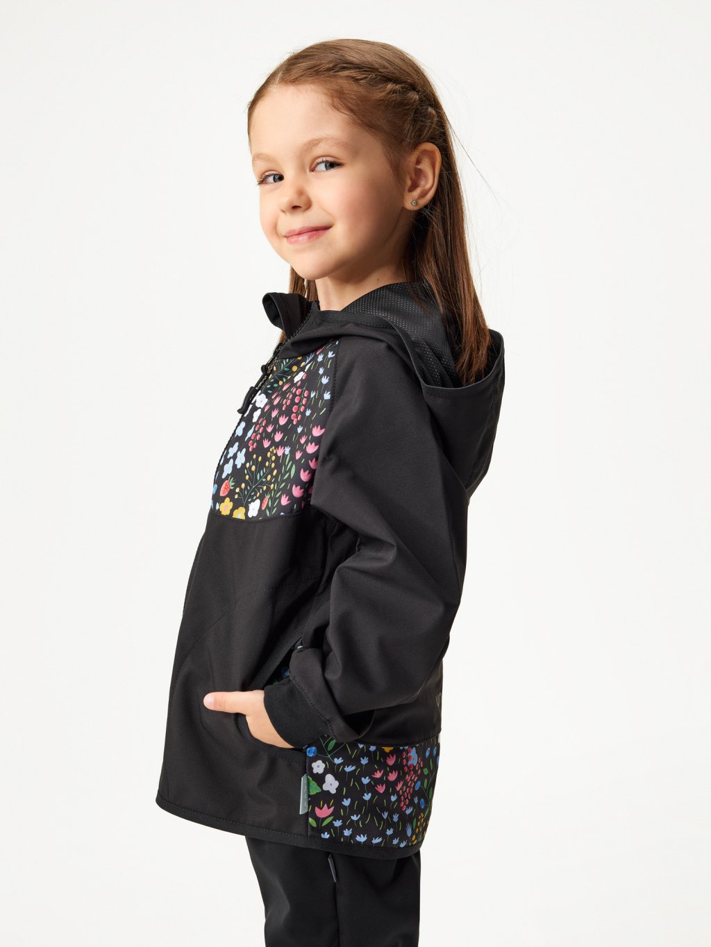 Detská softshellová bunda bez zateplenia Basic, Čierna, Záhrada