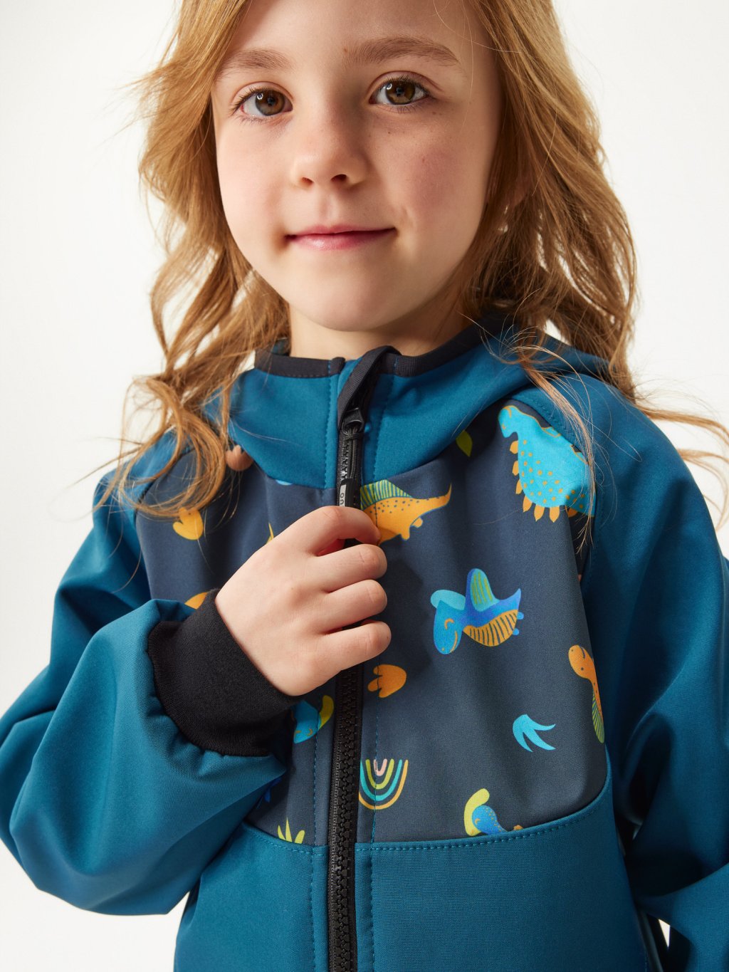 Detská softshellová bunda bez zateplenia Basic, Kobaltová, Dinosaury
