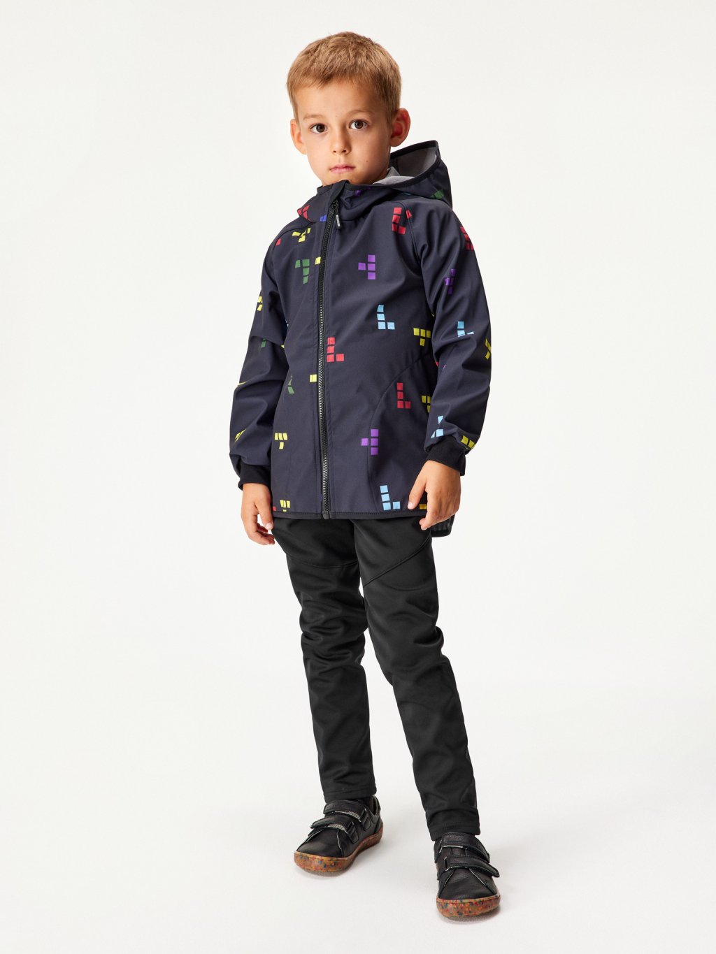 Detská softshellová bunda s fleecom Basic, Čierna, Kocky