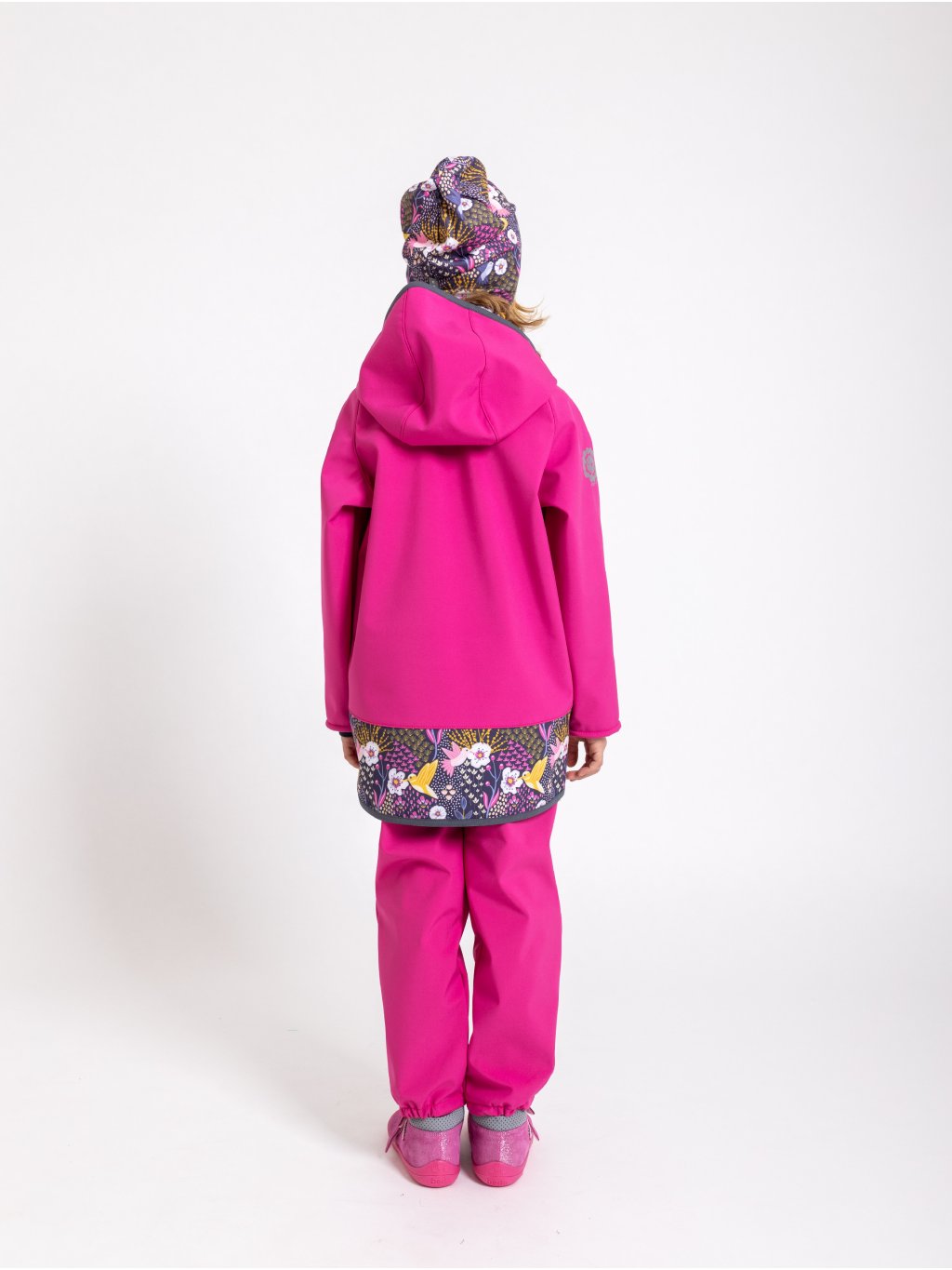 - hlavný materiál, potlač (softshell): rub, líc: 100% polyester, membrána: 100% polyuretan