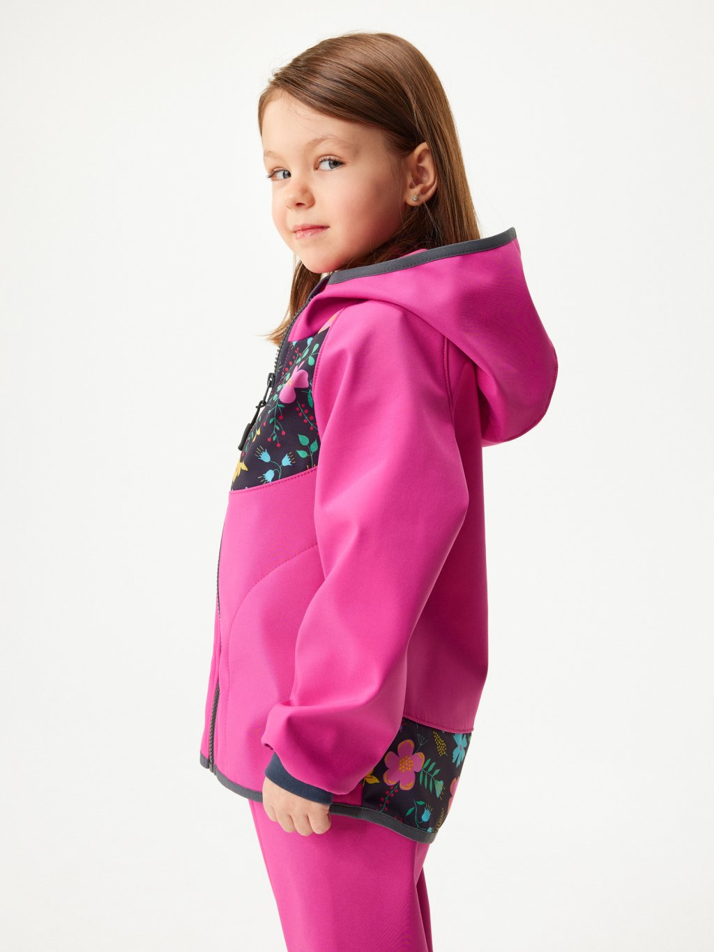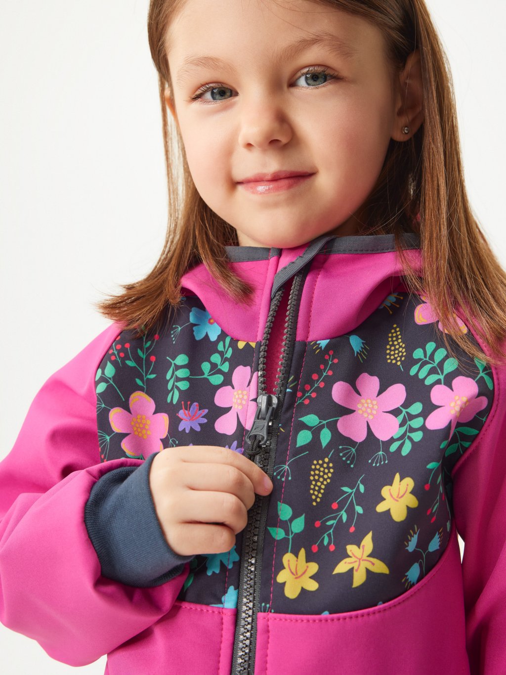 Detská softshellová bunda s fleecom Basic, Fuchsiová, Kvetinky