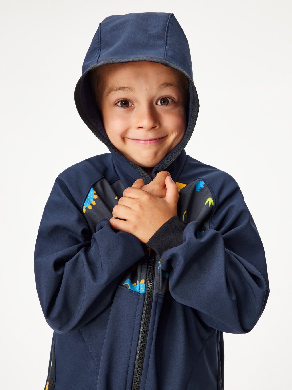 Detská softshellová bunda s fleecom Basic, Tm. Modročierna, Dinosaury