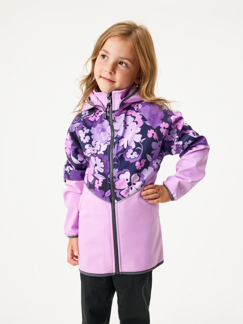 Detská softshellová bunda s fleecom Slim, Lila, Kvety