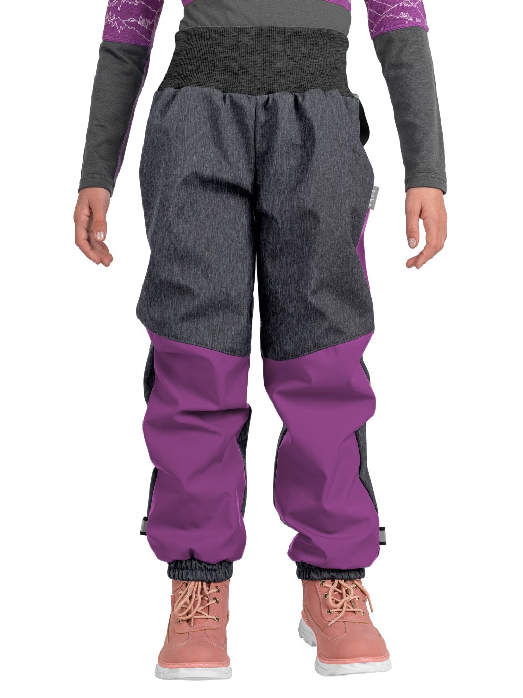Detské fleecové softshellové otepľovačky s fleecom Plus, Černicová, Žíhaná Antracitová, Jednorožce