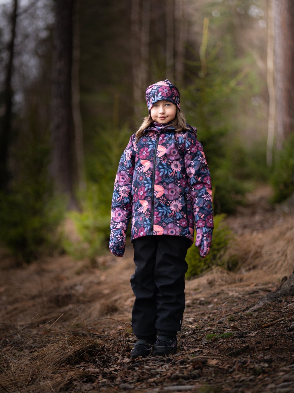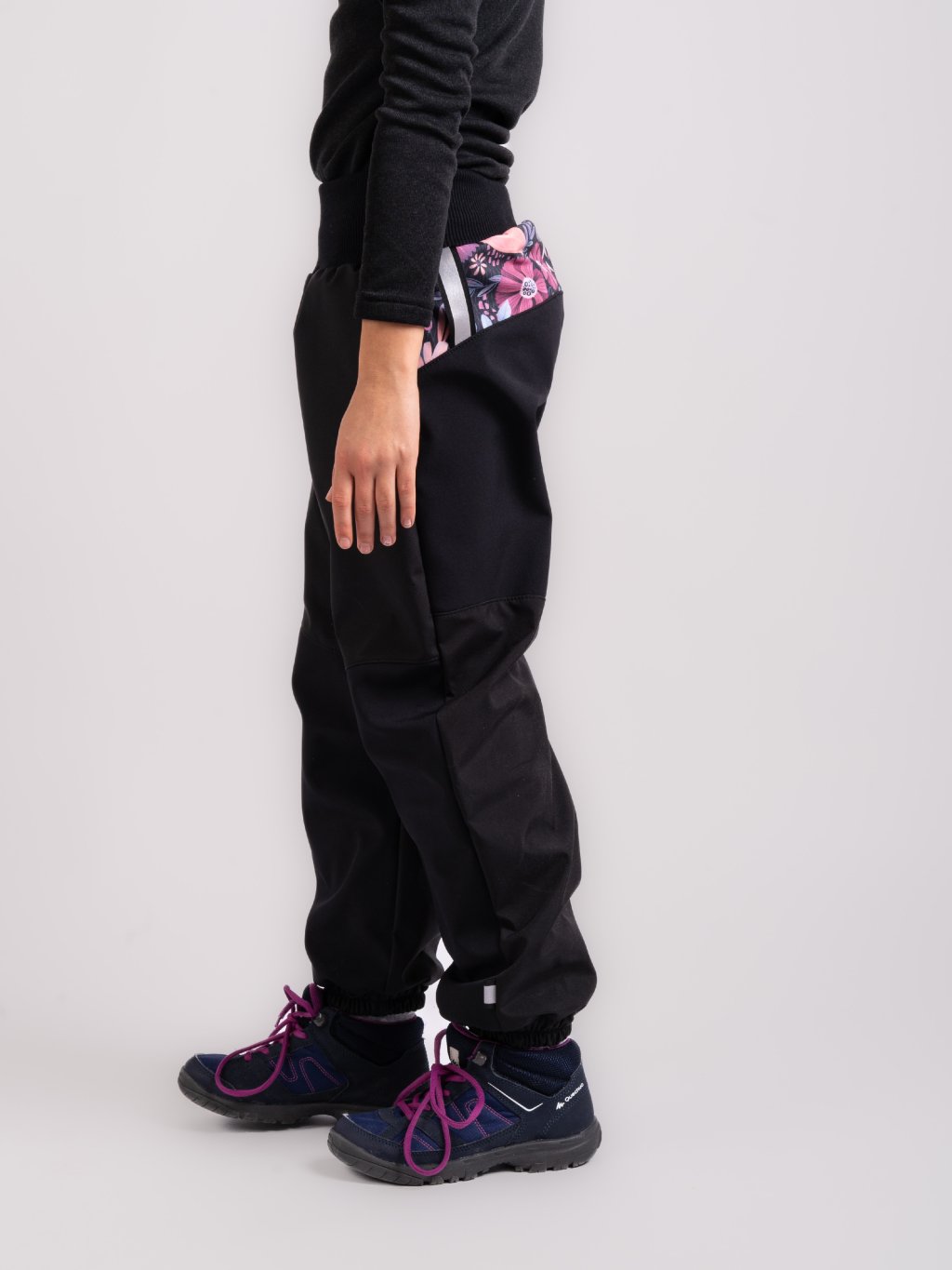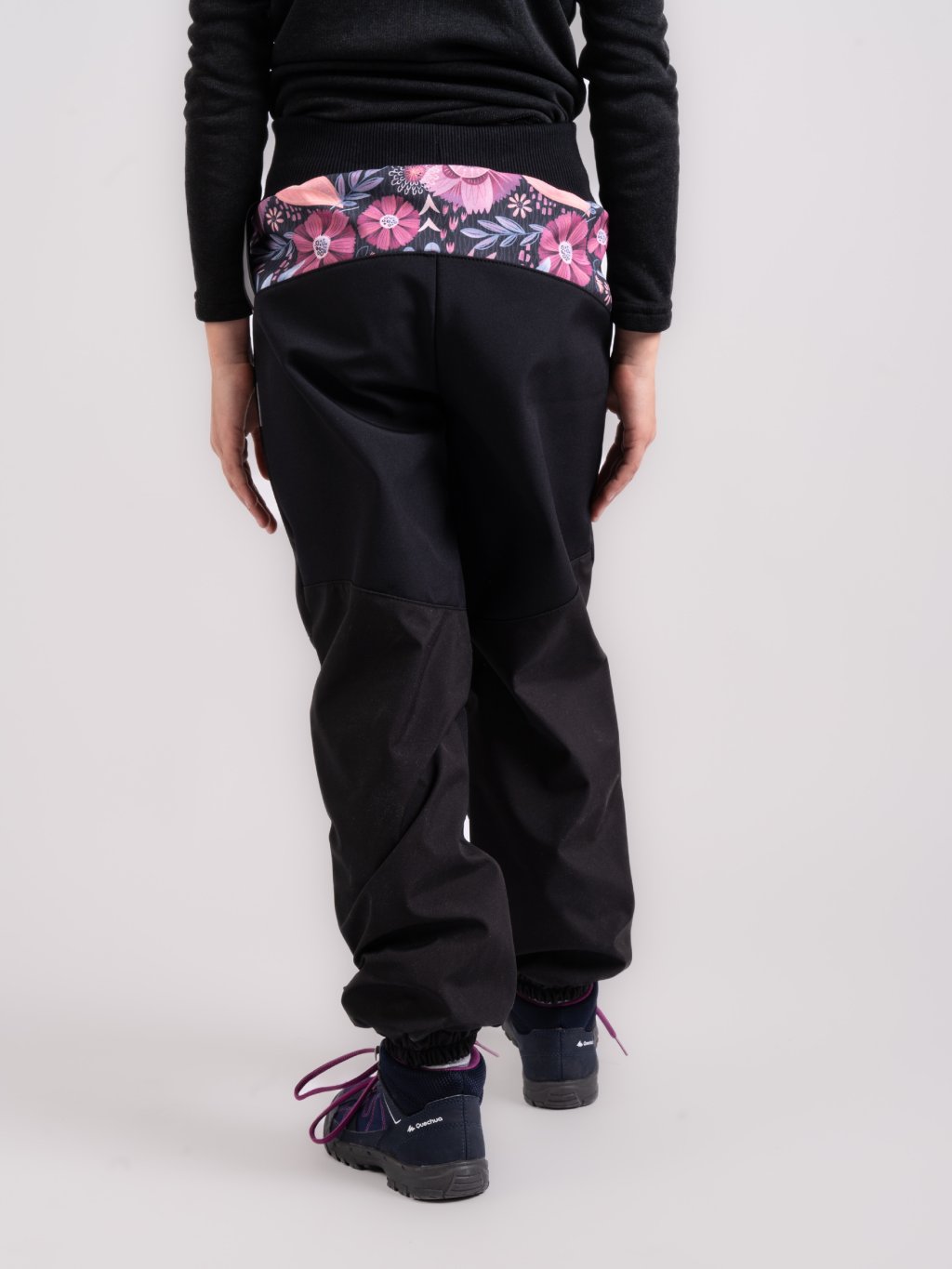 Detské fleecové softshellové otepľovačky s fleecom Plus, Čierna, Kúzelné kvety