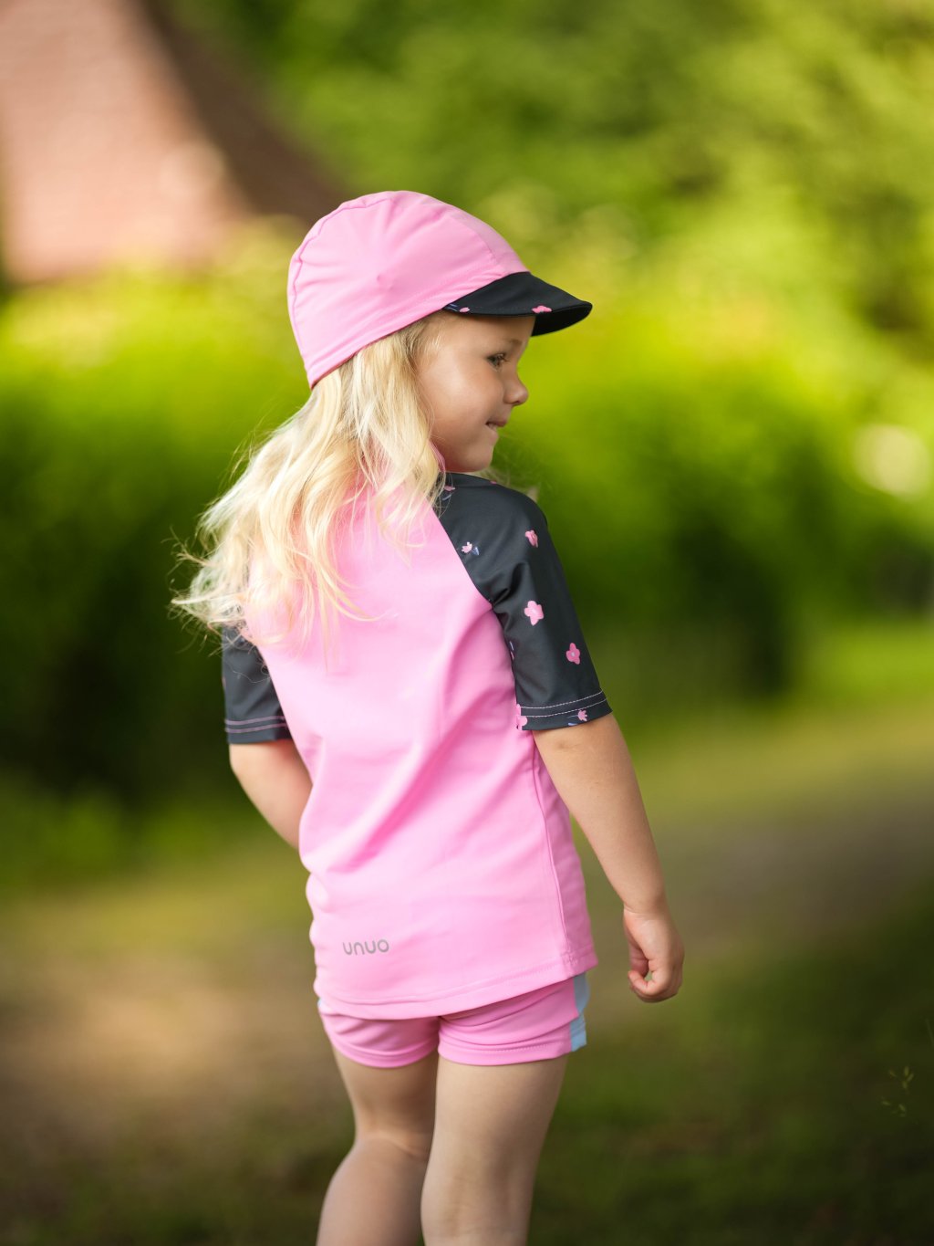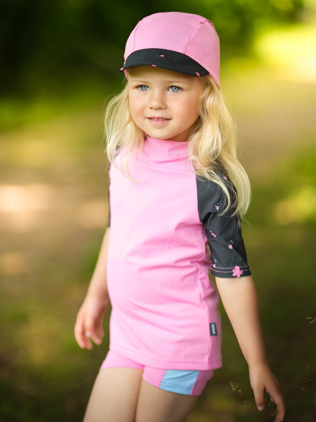 Kolekcia je vyrobená z kvalitnej talianskej flokovej tkaniny s UV ochranou 50+. Recyklovaný polyamid s certifikátom OEKO-TEX® zaručuje, že oblečenie je šetrné k životnému prostrediu a bezpečné pre detskú pokožku. Okrem toho je tento materiál rýchloschnúci, veľmi príjemný na dotyk a zaručuje maximálne pohodlie počas nosenia. Vďaka špeciálnej technológii pri výrobe materiálu je ochrana proti UV žiareniu trvalá a nevymýva sa ani po niekoľkých pracích cykloch.