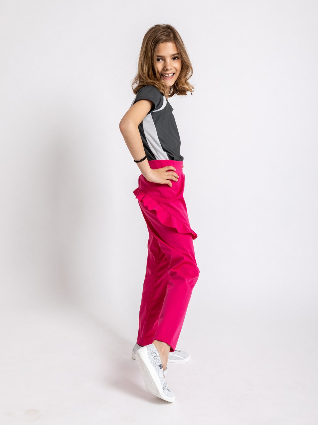 Fantasy a Sporty softshellky sú fantáziou každej mamičky. Predstavte si nohavice, ktoré si vaše princezná oblečie ráno do školy, vyšvihne v nich násobilku na jednotku a cestou domov si v nich užije nezriadené vonkajšie lumpačení v kalužiach. Na ľavej nohavici vzadu sú nohavice opatrené reflexným prvkom, pretože bezpečia je vždy až na 1. mieste! Spoločne s funkčnou eleganciou. Celý výrobok je opatrený reflexnými prvkami, pretože bezpečia je vždy až na 1. mieste!