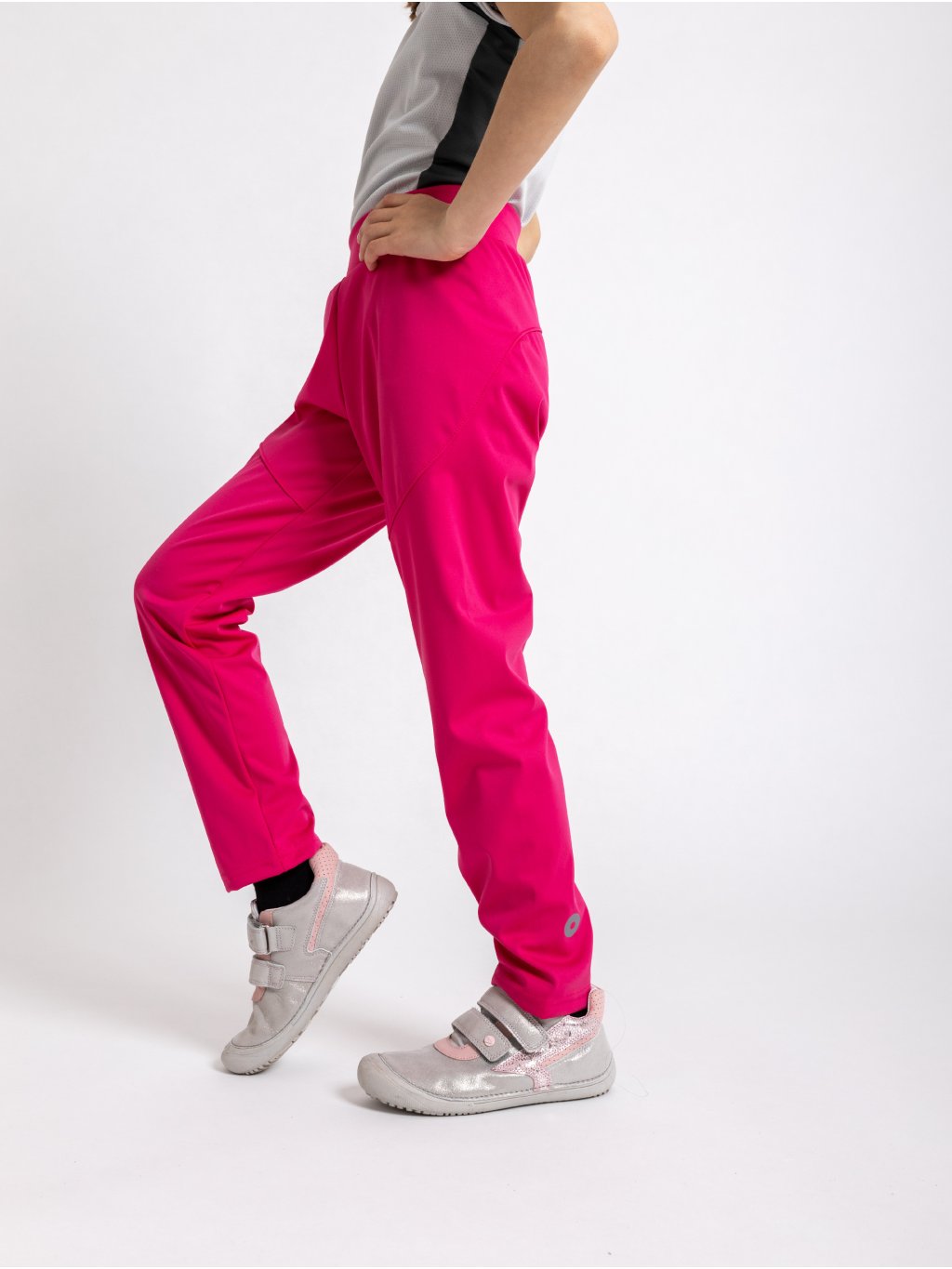 Fantasy a Sporty softshellky sú fantáziou každej mamičky. Predstavte si nohavice, ktoré si vaše princezná oblečie ráno do školy, vyšvihne v nich násobilku na jednotku a cestou domov si v nich užije nezriadené vonkajšie lumpačení v kalužiach. Na ľavej nohavici vzadu sú nohavice opatrené reflexným prvkom, pretože bezpečia je vždy až na 1. mieste! Spoločne s funkčnou eleganciou. Celý výrobok je opatrený reflexnými prvkami, pretože bezpečia je vždy až na 1. mieste!