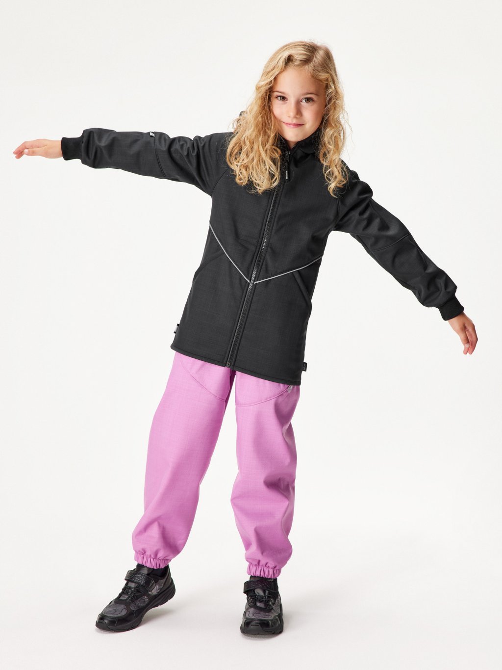 Materiál možno z kozmu, možno sa nám mamičkám iba zdá. V klasickom softu sme si zamilovali membránu, vďaka ktorej sa deti nezapotia ani keď svietia slniečko a jemný fleece na rubovej strane, ktorý nás zahreje pri jesenných radovánkach. Ale čo keď napadne sneh? Predstavujeme vám softshell, ktorý má na vnútornej strane hrejivého baránka, takže ani tým najväčším zmrzlíkom nezamrzne úsmev na perách. Dnes sa tento materiál vyrába najmä z recyklovaných PET fliaš. Materiál nie je úplne vodeodolný ako pláštenka, ale menšie doštičky zvládne s prehľadom. Vodeodolnosť: