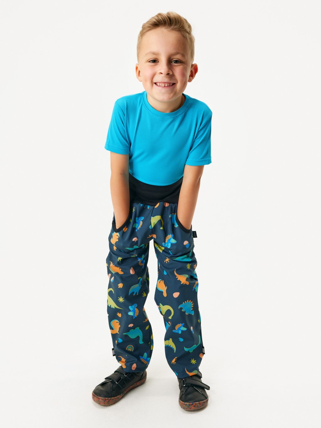 Detské softshellové nohavice s fleecom Basic, Dinosaury