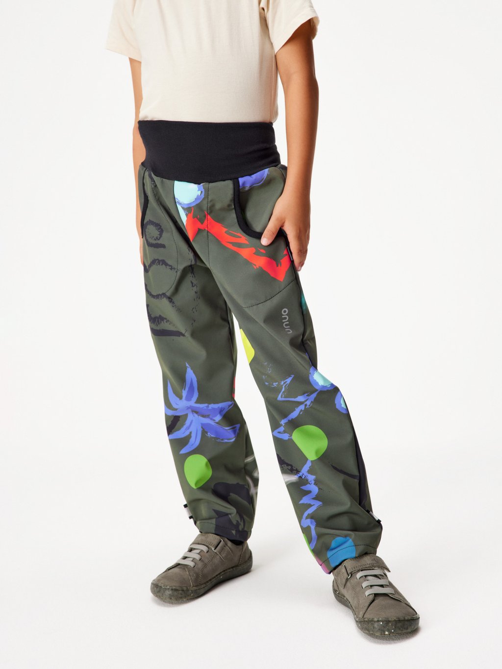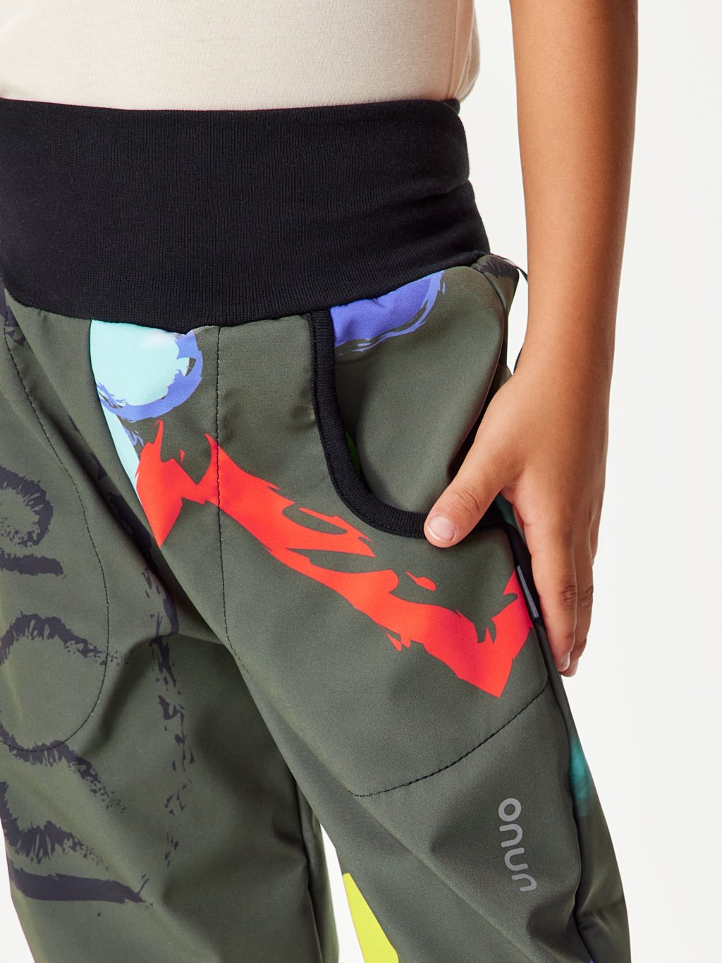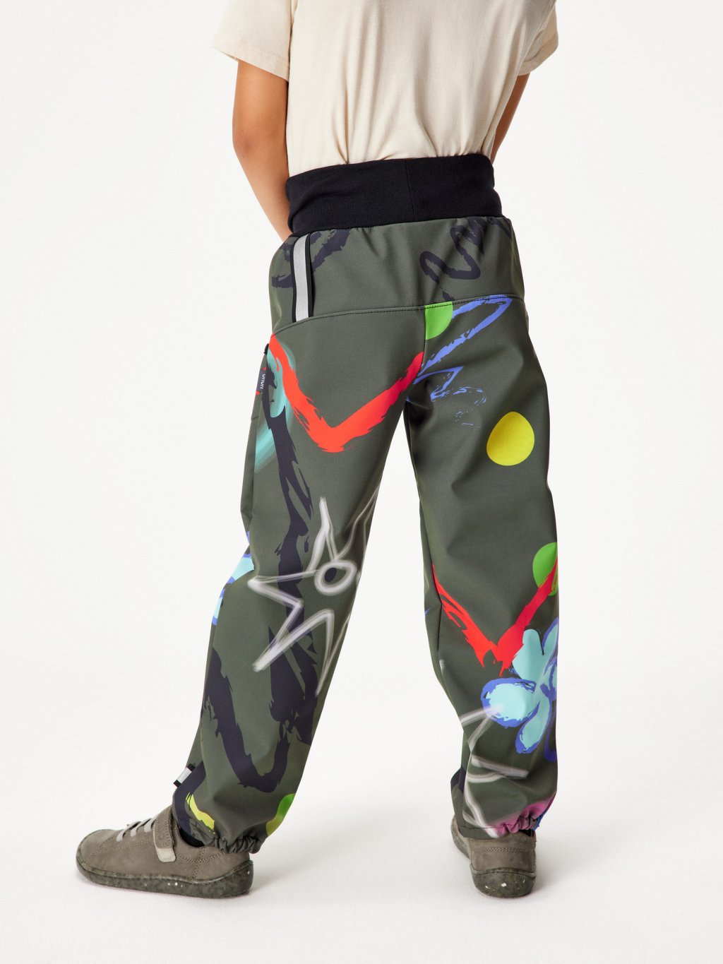 Detské softshellové nohavice s fleecom Basic, Khaki, Fantázia