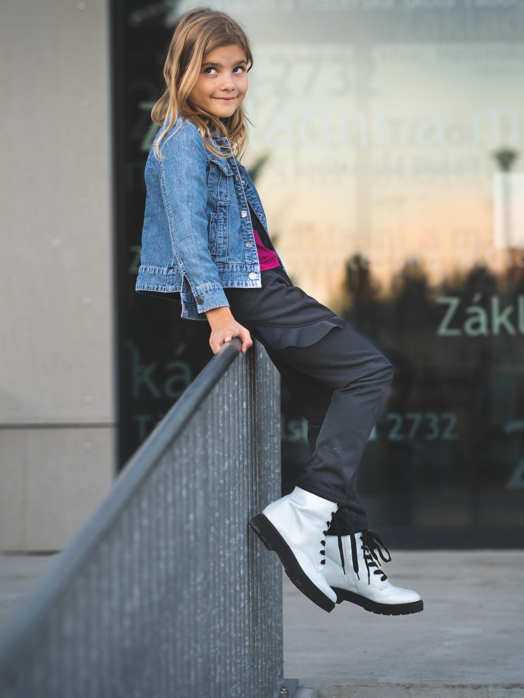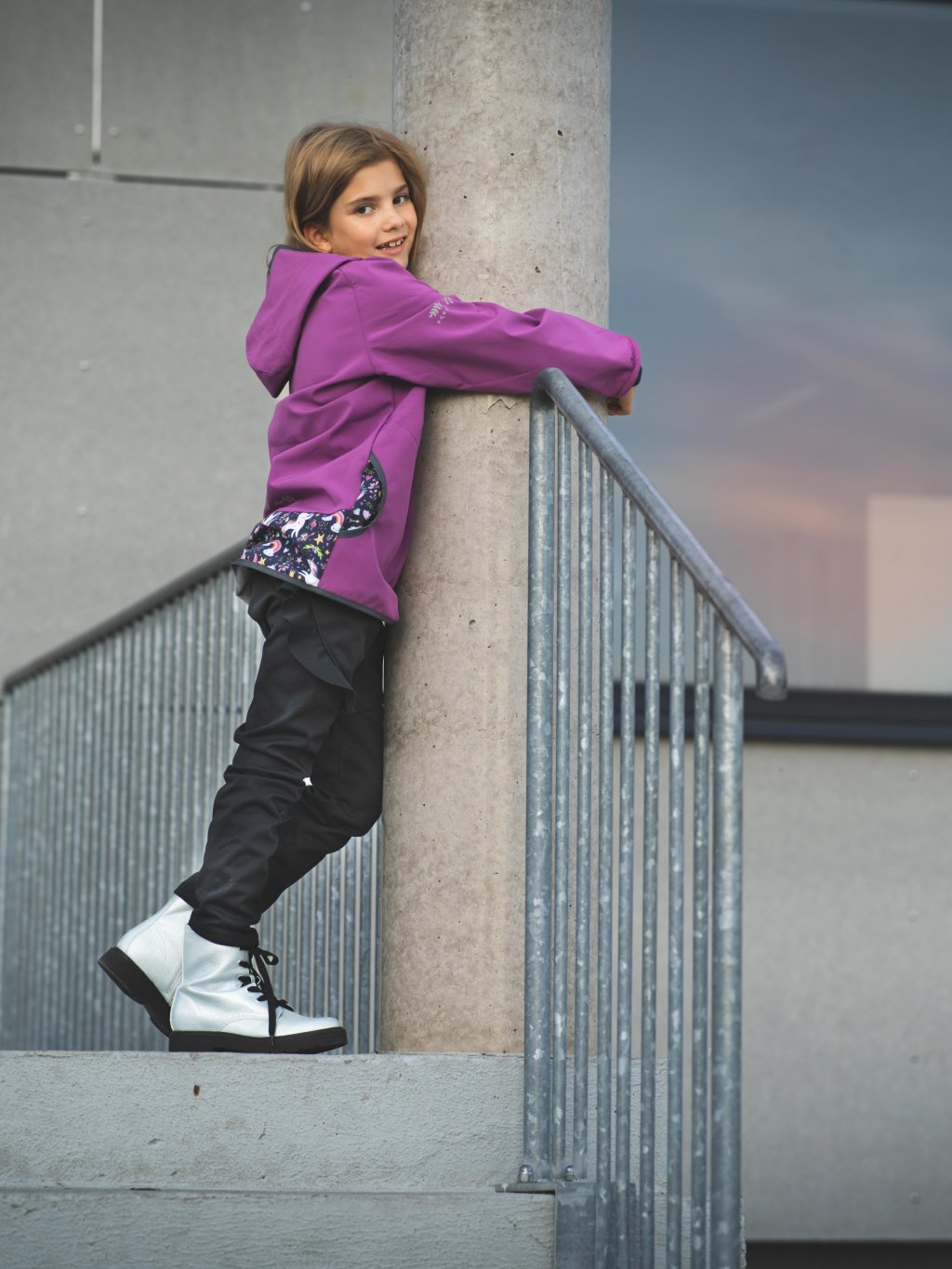 Fantasy a Sporty softshellky sú fantáziou každej mamičky. Predstavte si nohavice, ktoré si vaše princezná oblečie ráno do školy, vyšvihne v nich násobilku na jednotku a cestou domov si v nich užije nezriadené vonkajšie lumpačení v kalužiach. Na ľavej nohavici vzadu sú nohavice opatrené reflexným prvkom, pretože bezpečia je vždy až na 1. mieste! Spoločne s funkčnou eleganciou. Celý výrobok je opatrený reflexnými prvkami, pretože bezpečia je vždy až na 1. mieste!