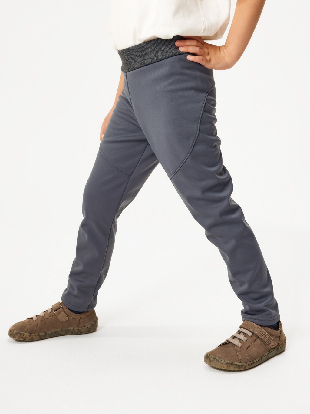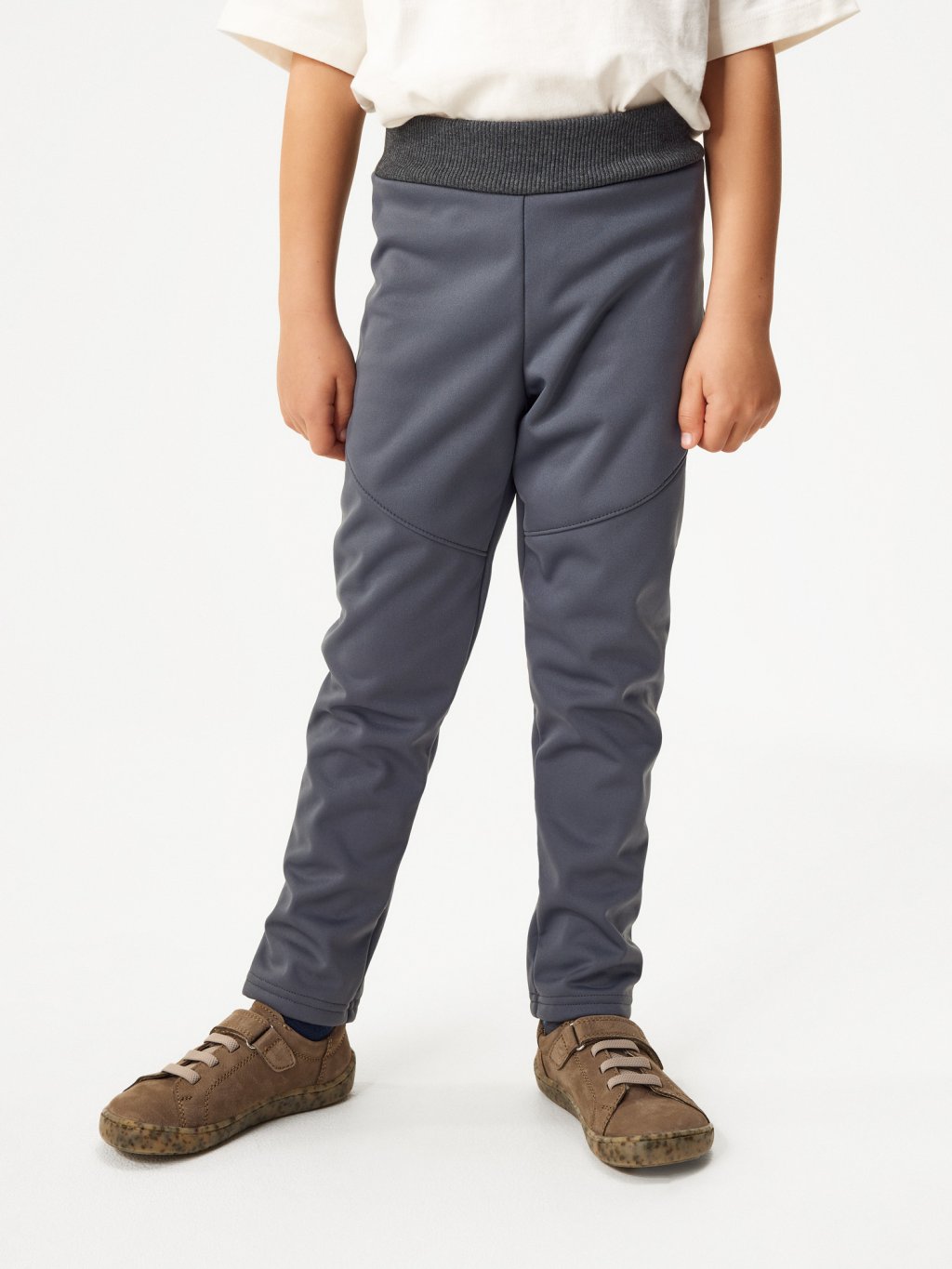 Detské softshellové nohavice s fleecom elastické Sporty, Tm. Sivá