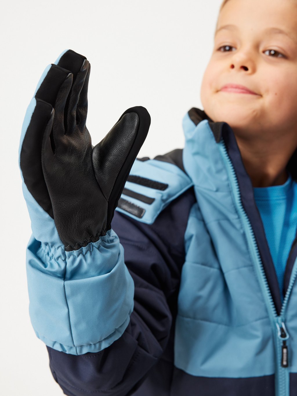Tieto lyžiarske rukavice myslia na všetko, čo deti pri zimných radovánkach potrebujú. Majú predĺžený strih, takže sa ľahko natiahnu cez rukáv bundy a ochránia tak zápästie pred snehom. Brzdička umožňuje rukavice stiahnuť podľa potreby a vďaka vnútornej gumičke na zápästí sa len tak nestratia. Výšivka s logom unuo dodáva rukaviciam štýlový detail. Praktické, teplé a pripravené na každú guľovačku aj lyžovačku. Zimná kolekcia bola navrhnutá v Českej republike a ušitá v zahraničnej šijacej dielni.