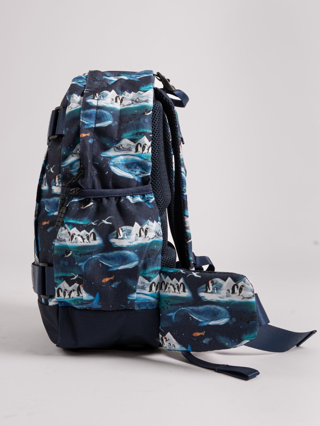 Batoh má polstrovaný chrbát a nastaviteľné ramenné popruhy, ktoré zabezpečujú pohodlné nosenie, zatiaľ čo hrudný a bedrový pás poskytujú dodatočnú oporu a stabilitu pri prenášaní všetkých nevyhnutných vecí. Vo vnútri nájdete priestranné vrecko na knihy, občerstvenie a obľúbené hračky, zatiaľ čo malé vrecko na zips na vonkajšej strane uľahčuje rýchly prístup ku všetkým potrebným veciam. Bočné vrecko na fľašu pomôže udržať dostatočný príjem tekutín pre vaše deti počas celého dňa.
