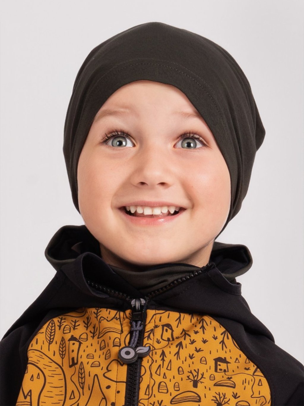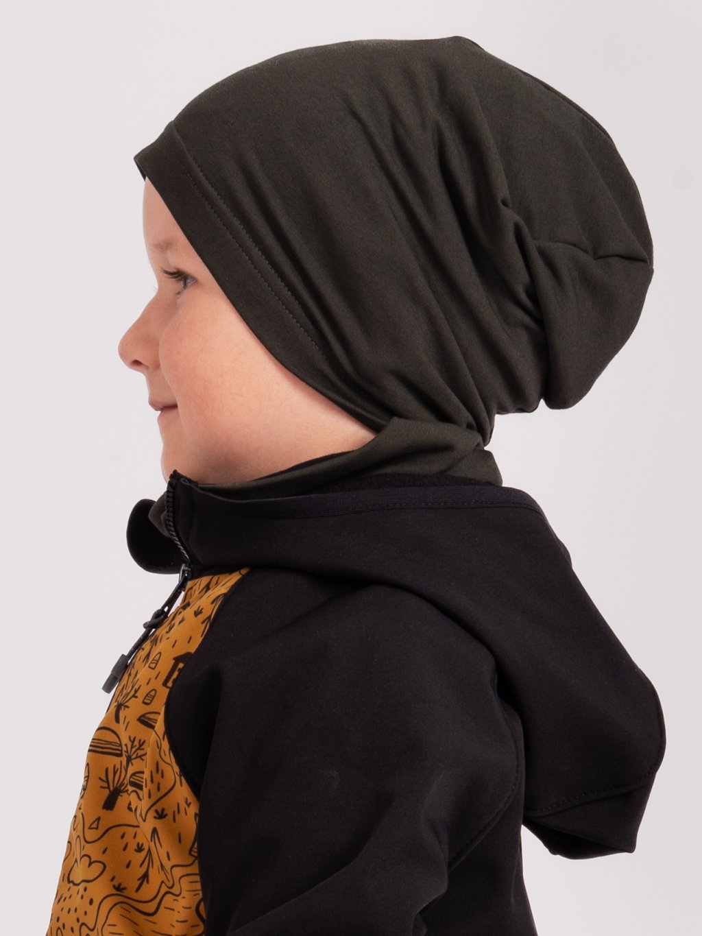Detský bavlnený nákrčník Basic, Tm. Khaki