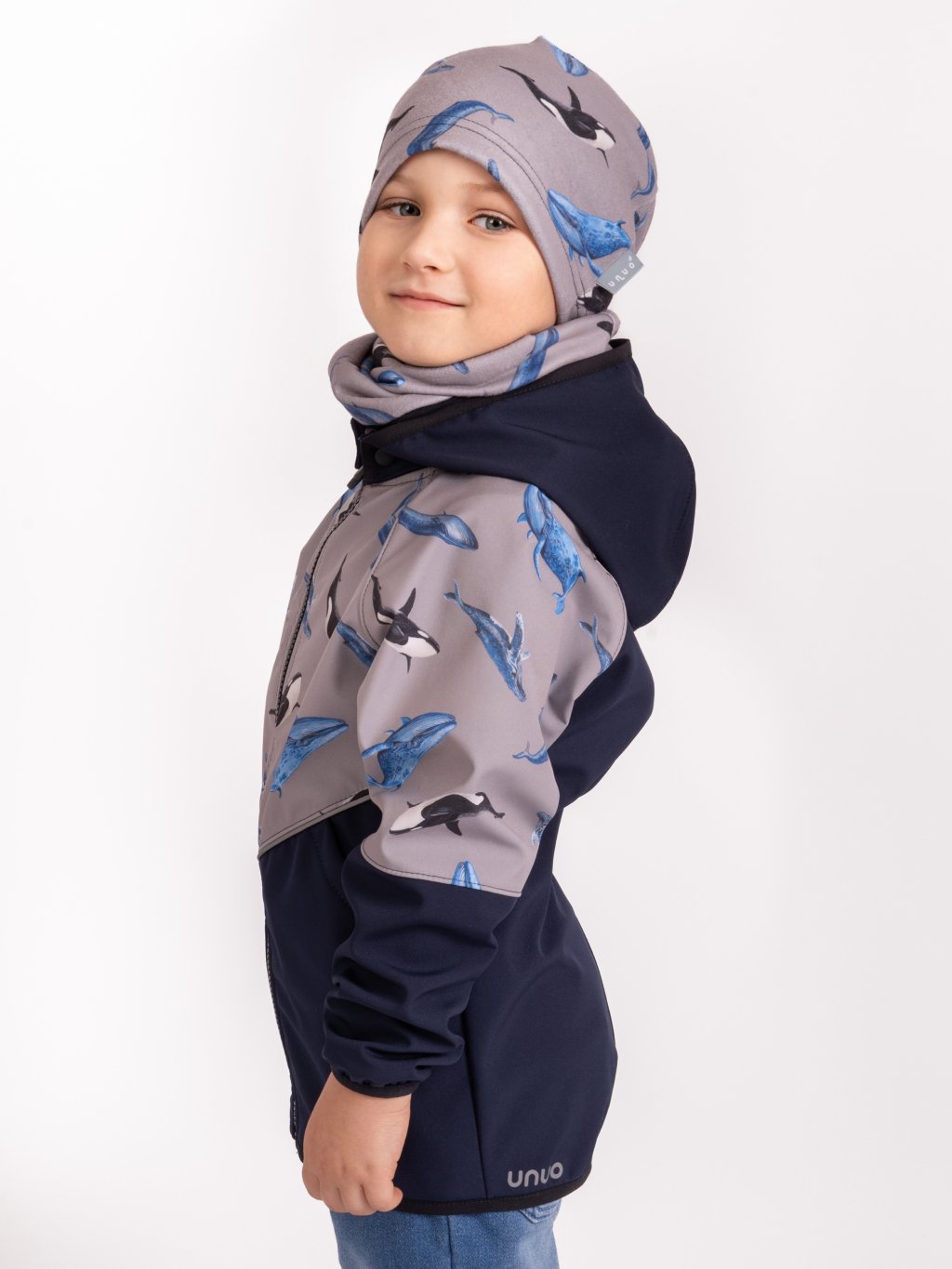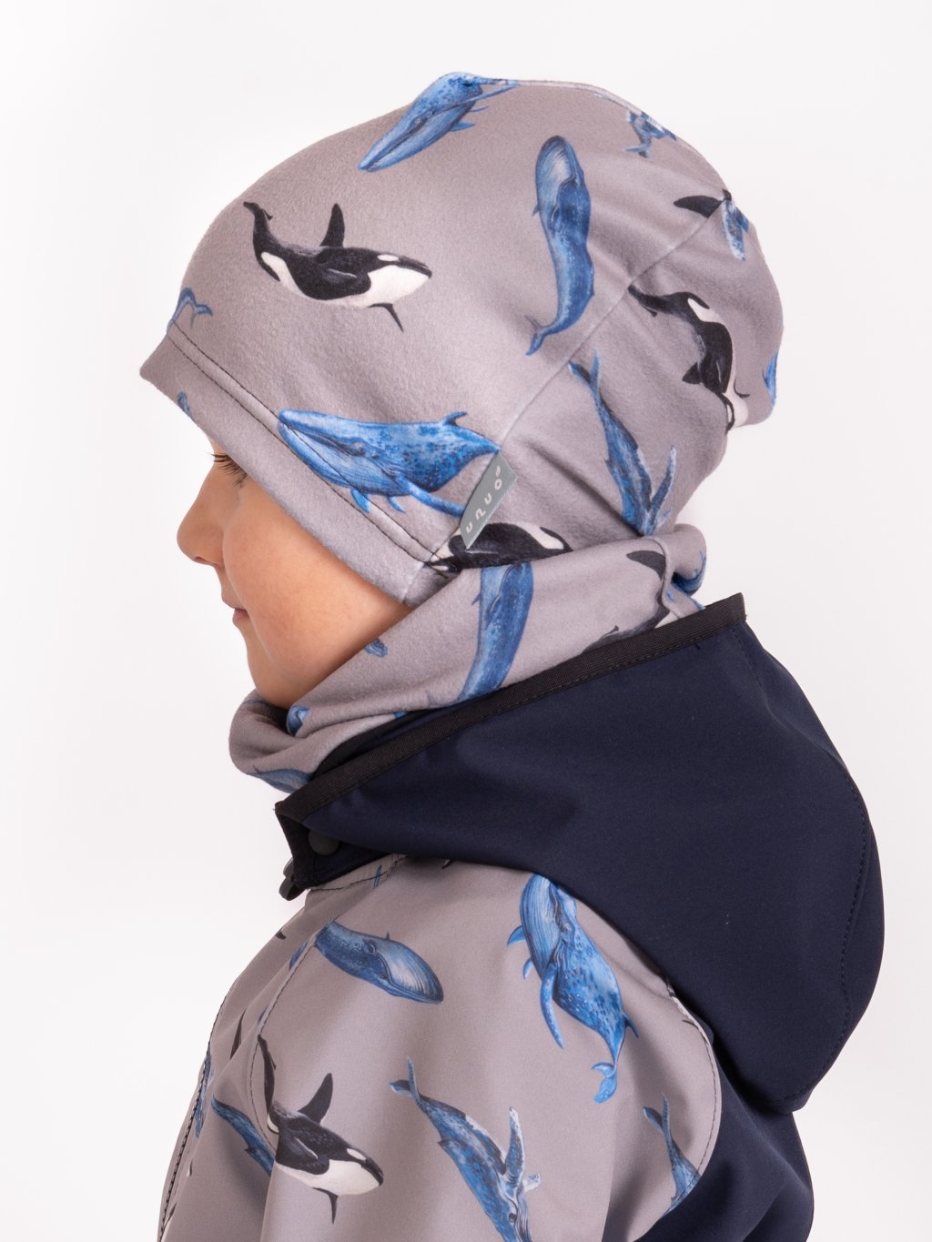 Detský fleecový nákrčník Basic, Sivá, Veľryby