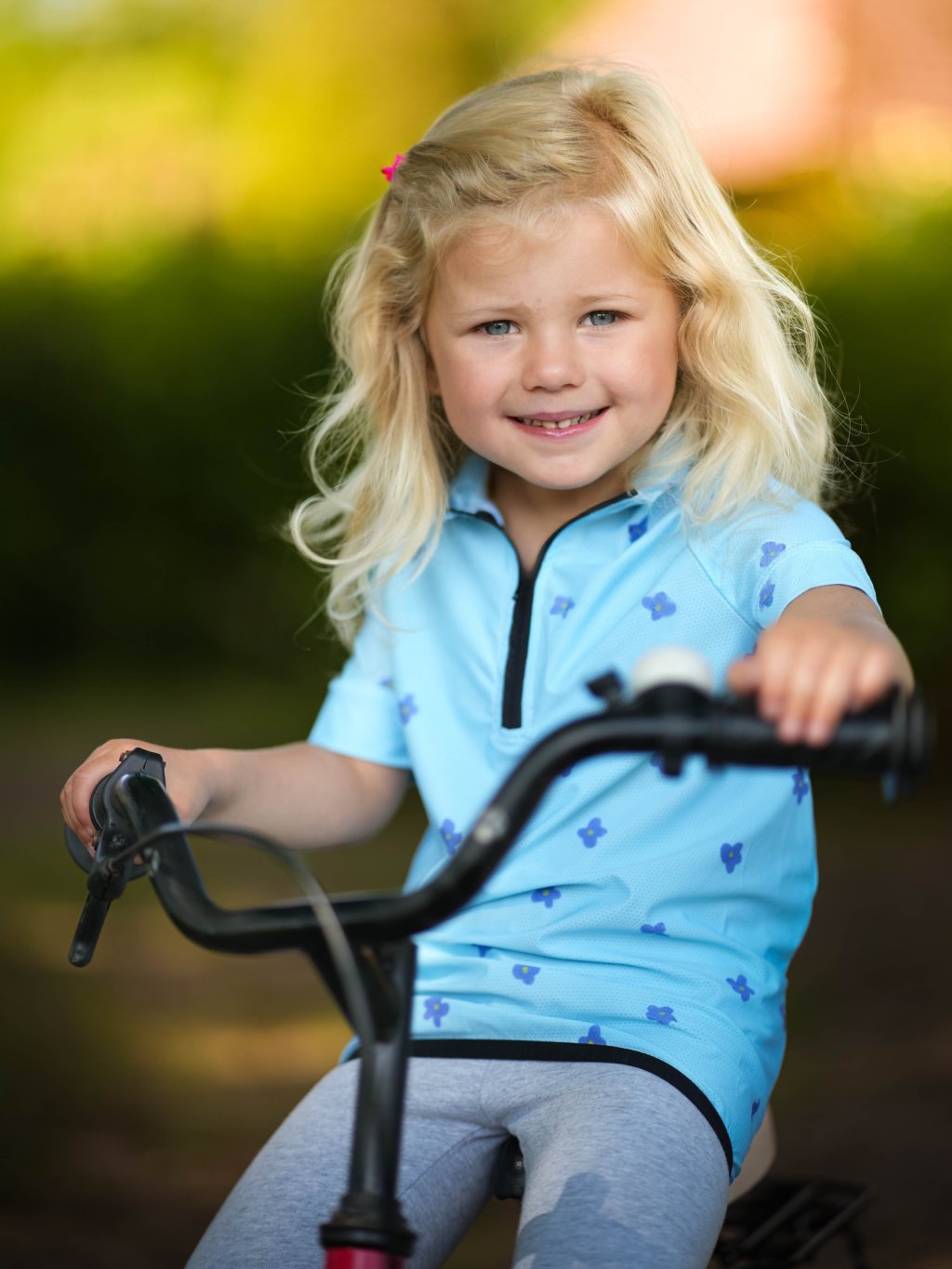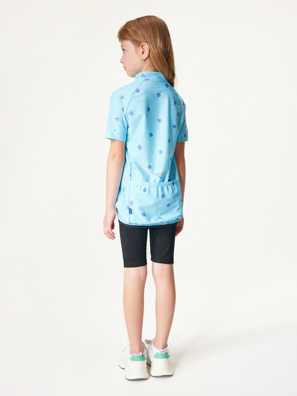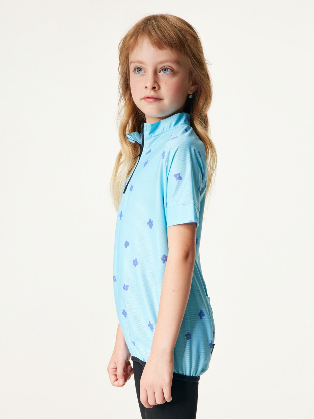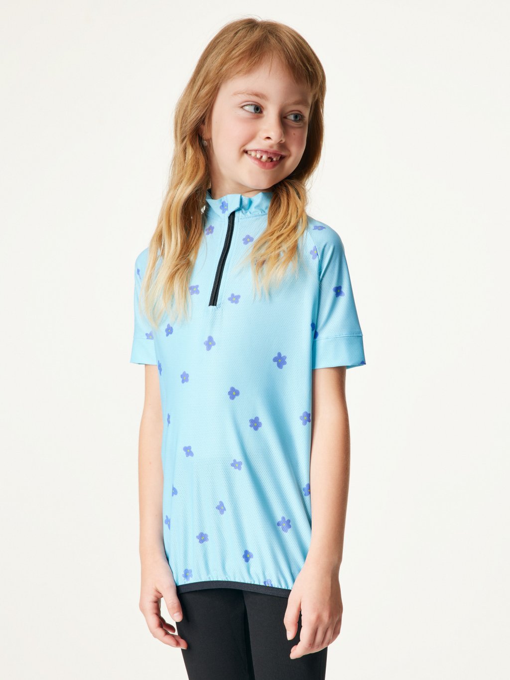 Detský funkčný cyklistický dres, Svetlomodrá, Kvety