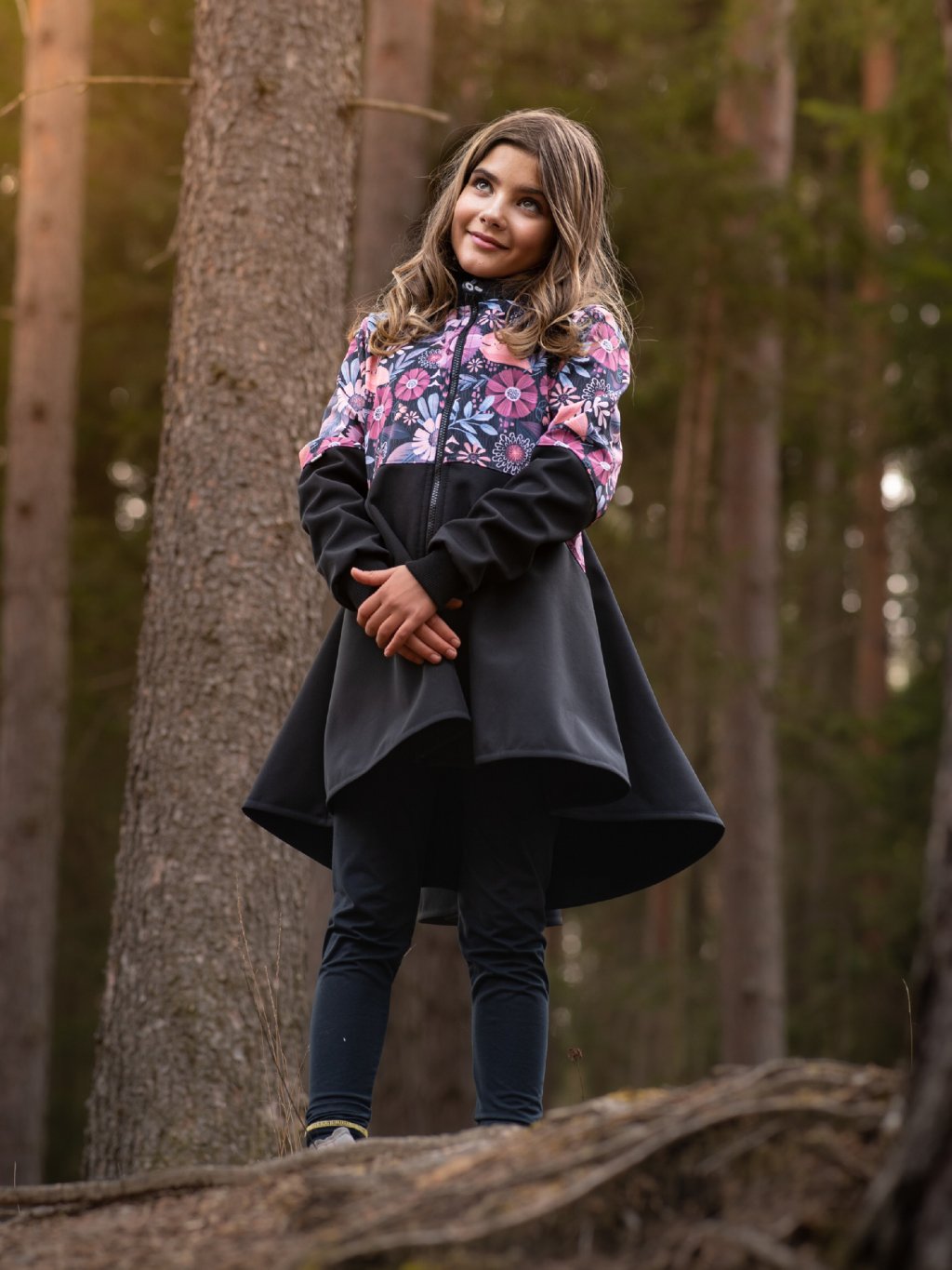 Dievčenský softshellový kabát s fleecom Romantico, Čierna, Kúzelné kvety