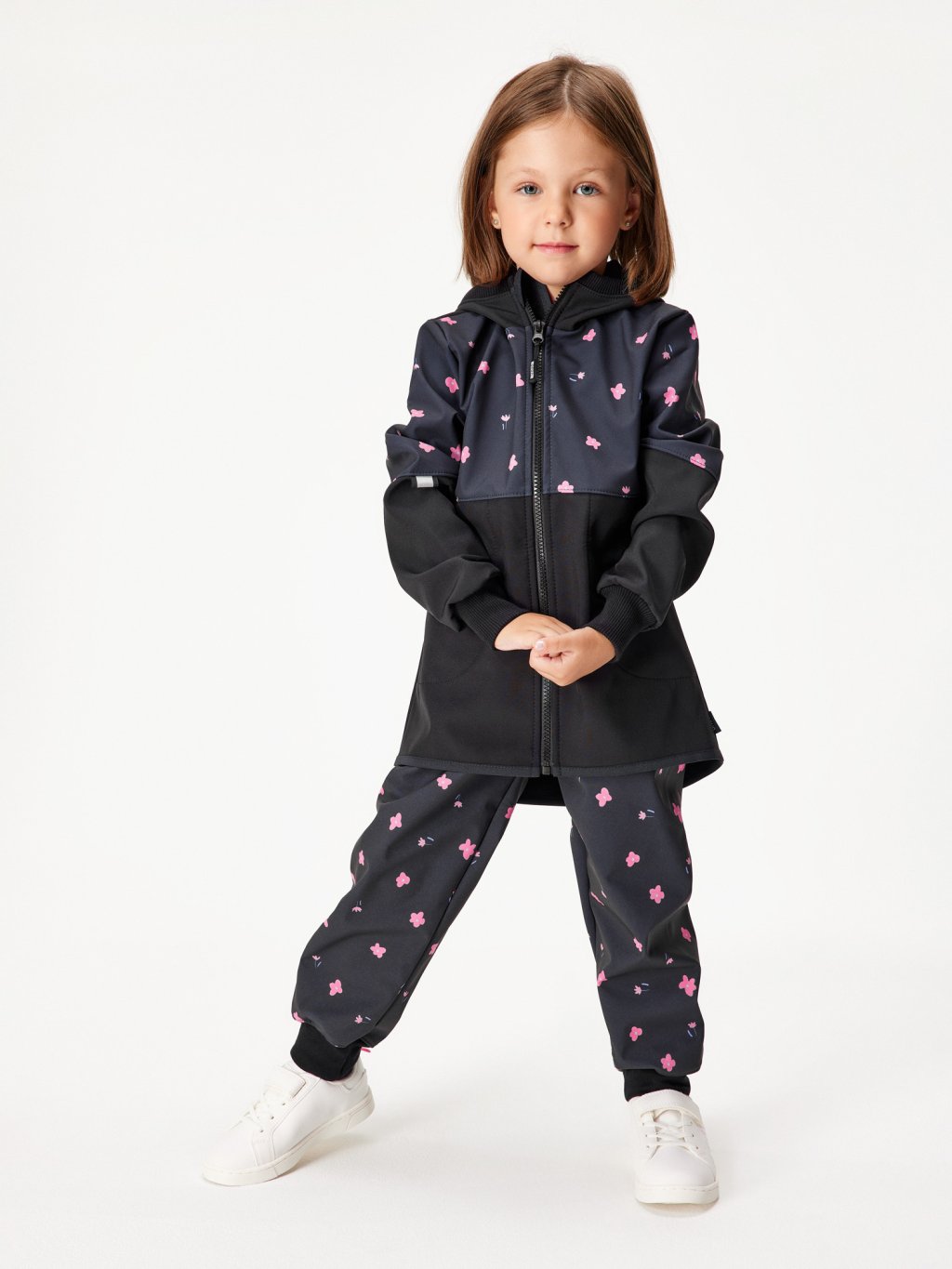 Dievčenský softshellový kabát s fleecom Street, Čierna, Kvety