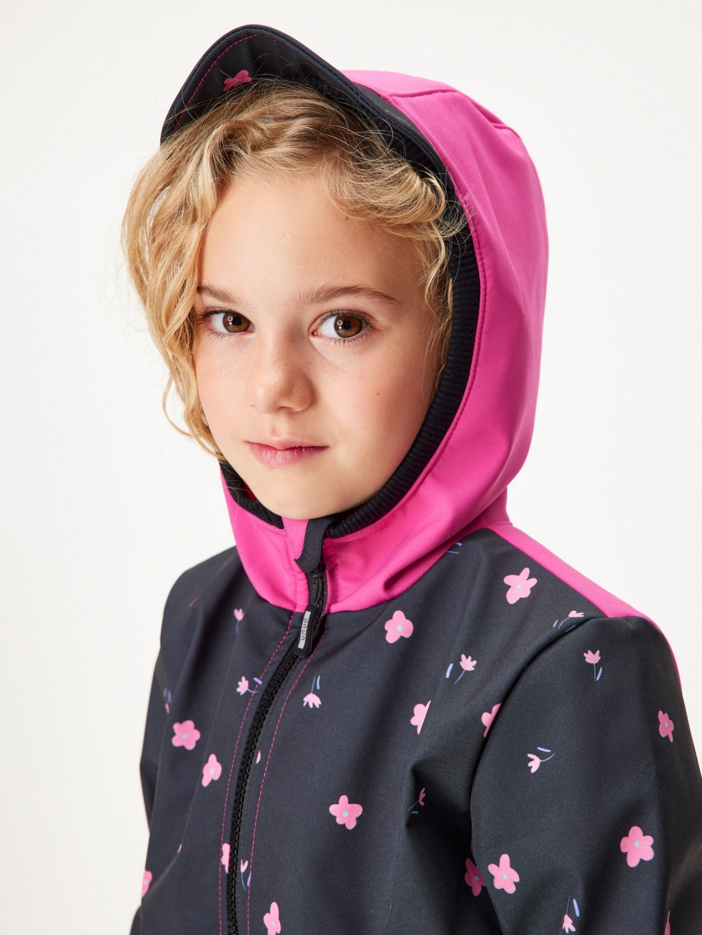 Dievčenský softshellový kabát s fleecom Street, Fuchsiová, Kvety
