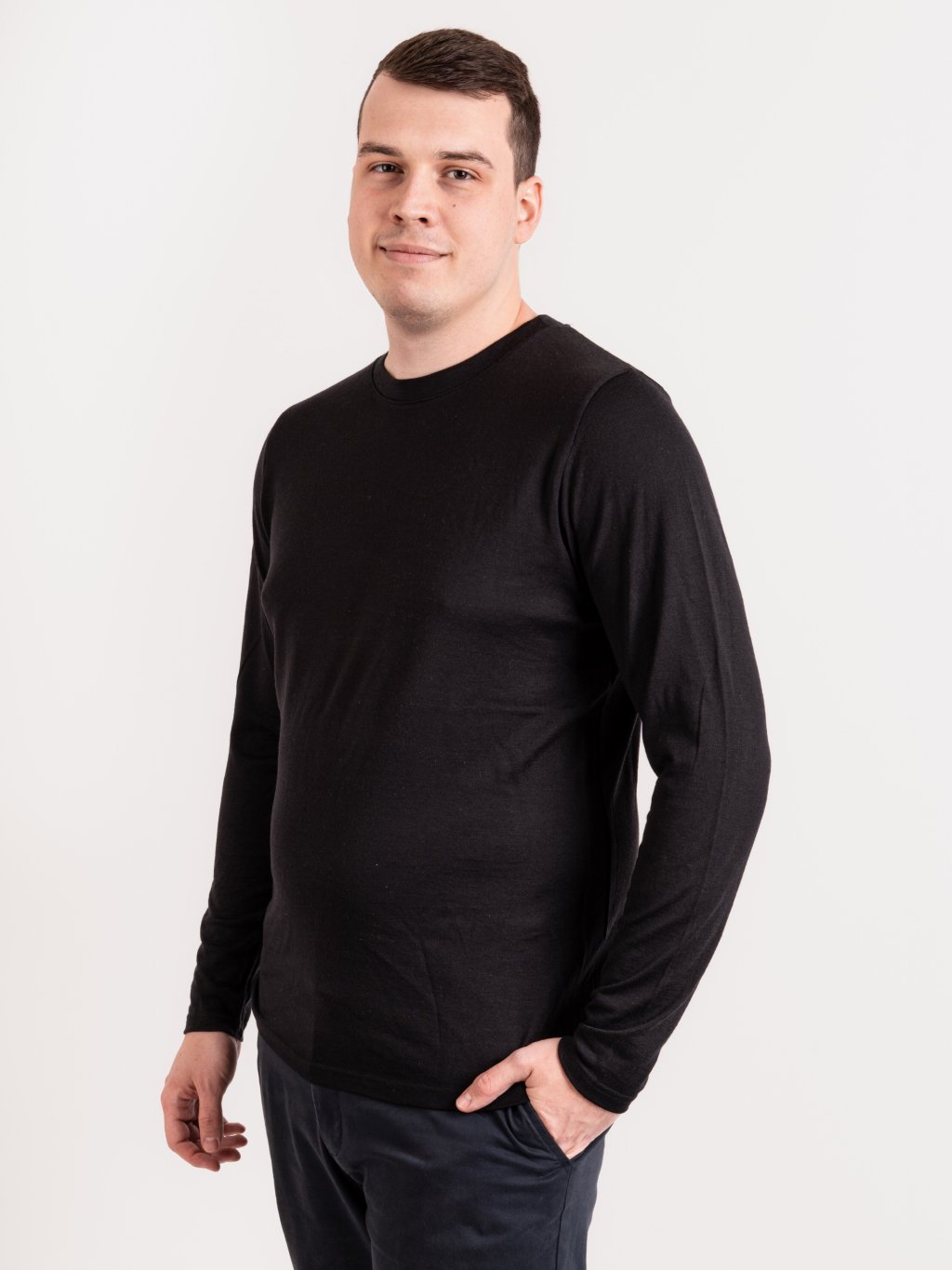 Pánske merino tričko s dlhým rukávom Nature, Čierna
