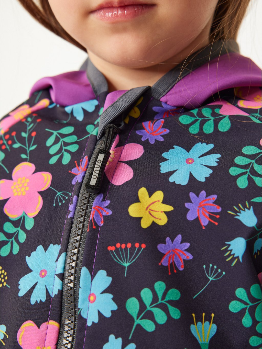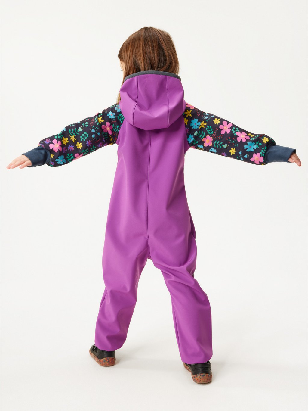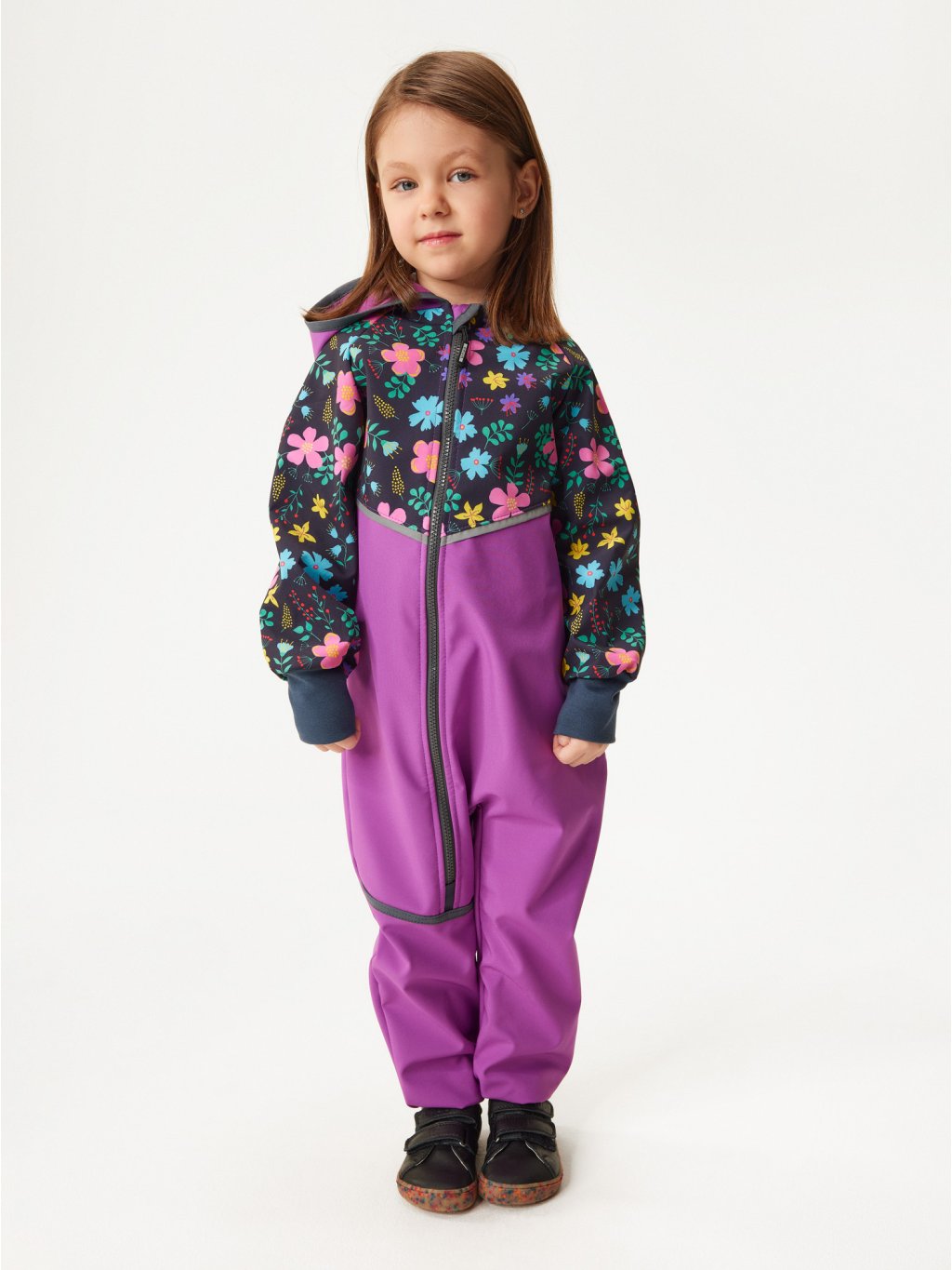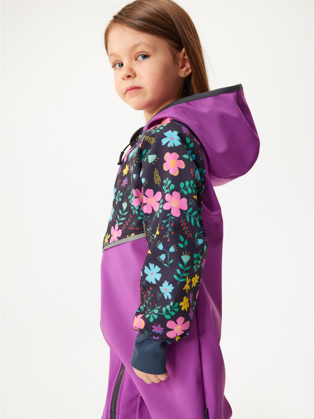 Softshellová kombinéza pre batoľatá s fleecom Mini, Černicová, Kvetinky
