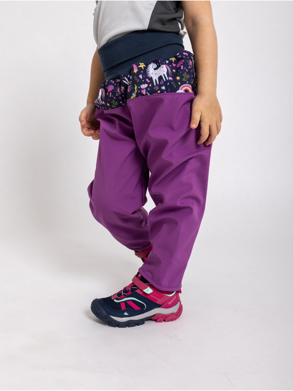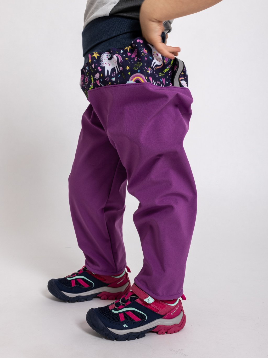 Softshellové nohavice pre batoľatá s fleecom Basic, Černicová, Jednorožce