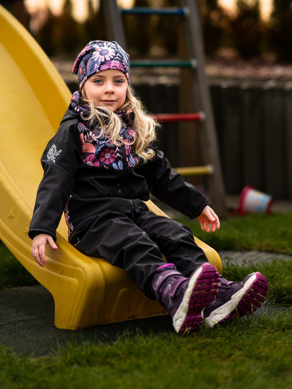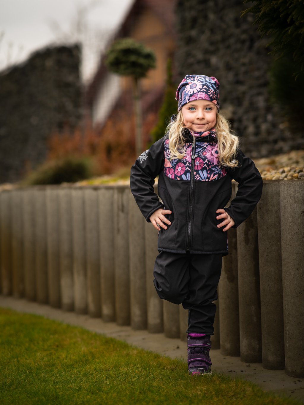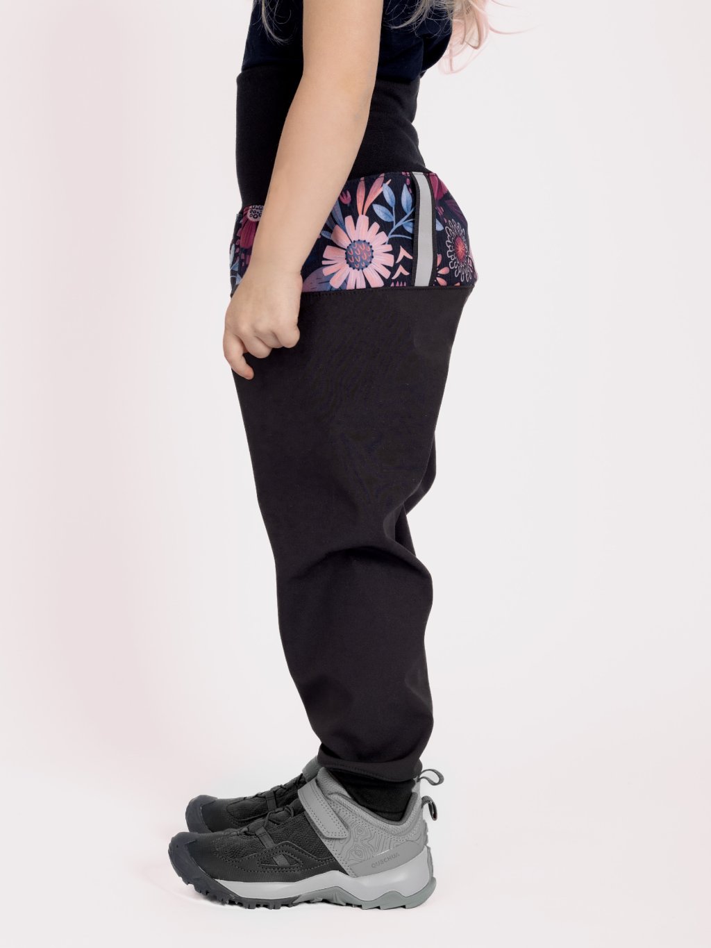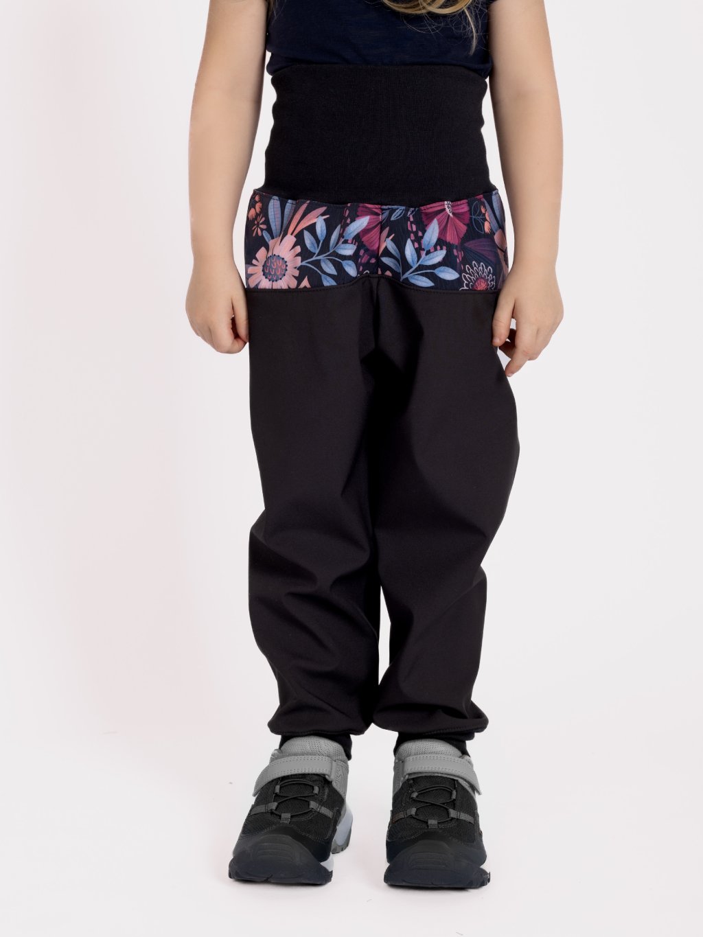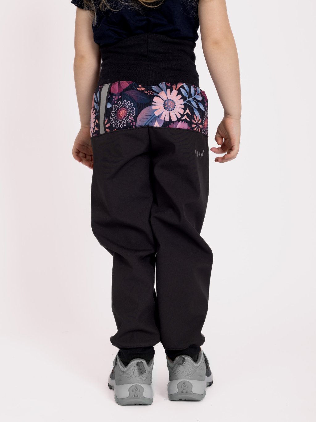 Softshellové nohavice pre batoľatá s fleecom Basic, Čierna, Kúzelné kvety