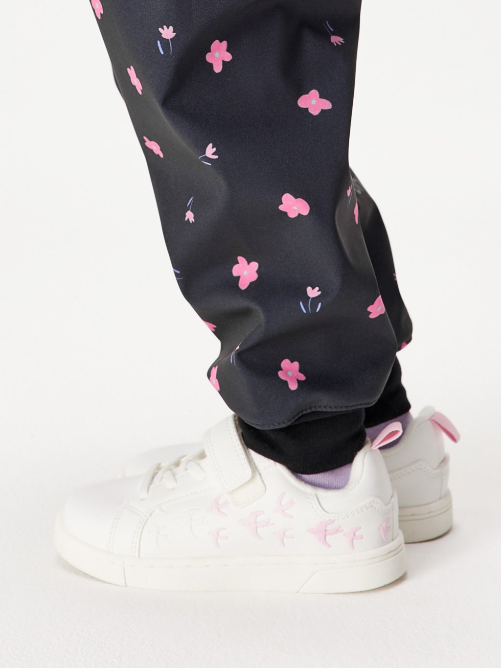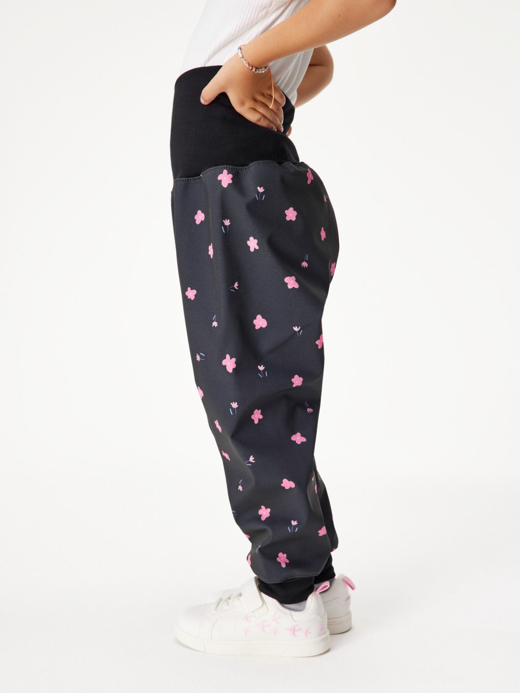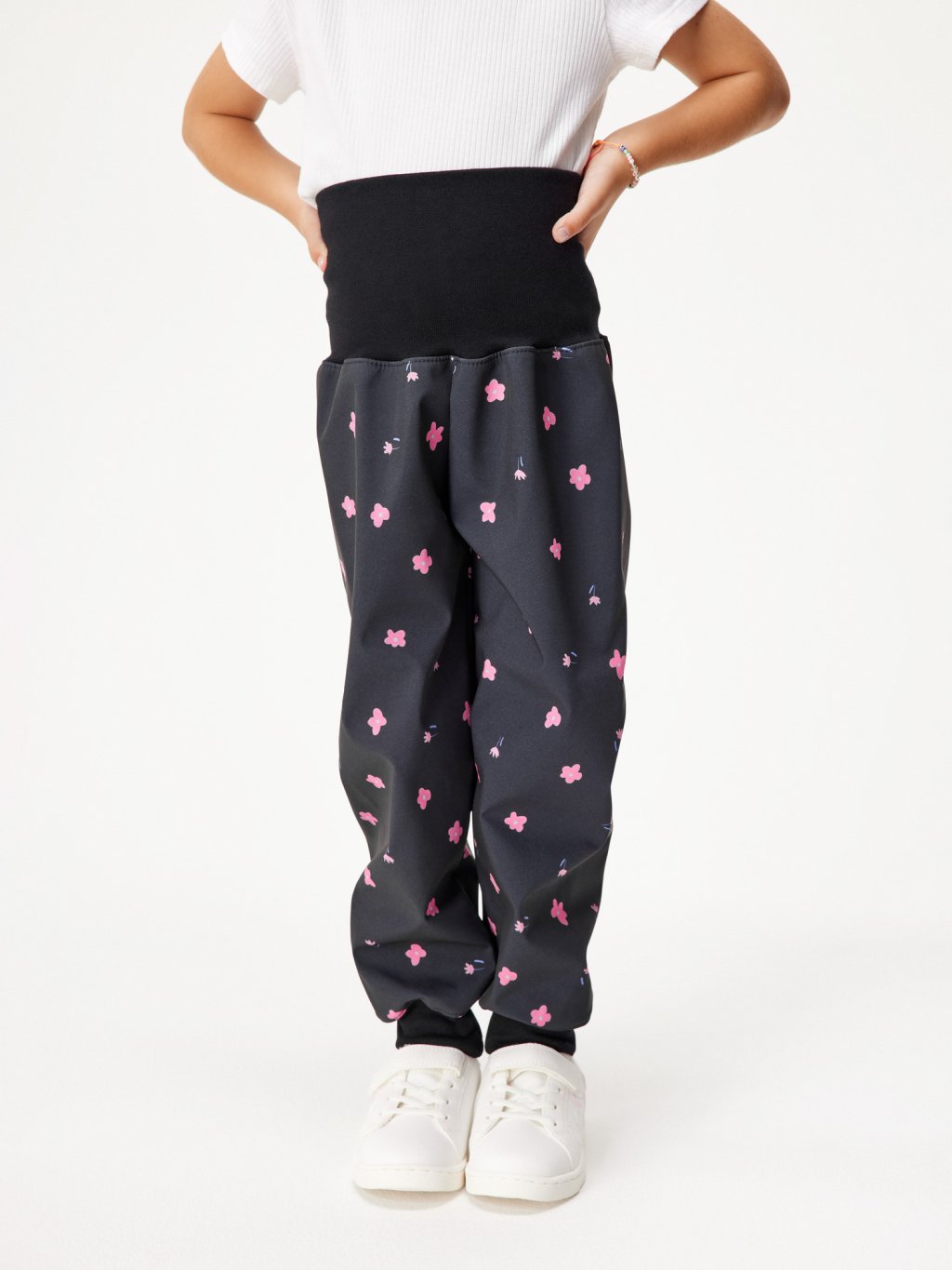 Softshellové nohavice pre batoľatá s fleecom Basic, Čierna, Kvety